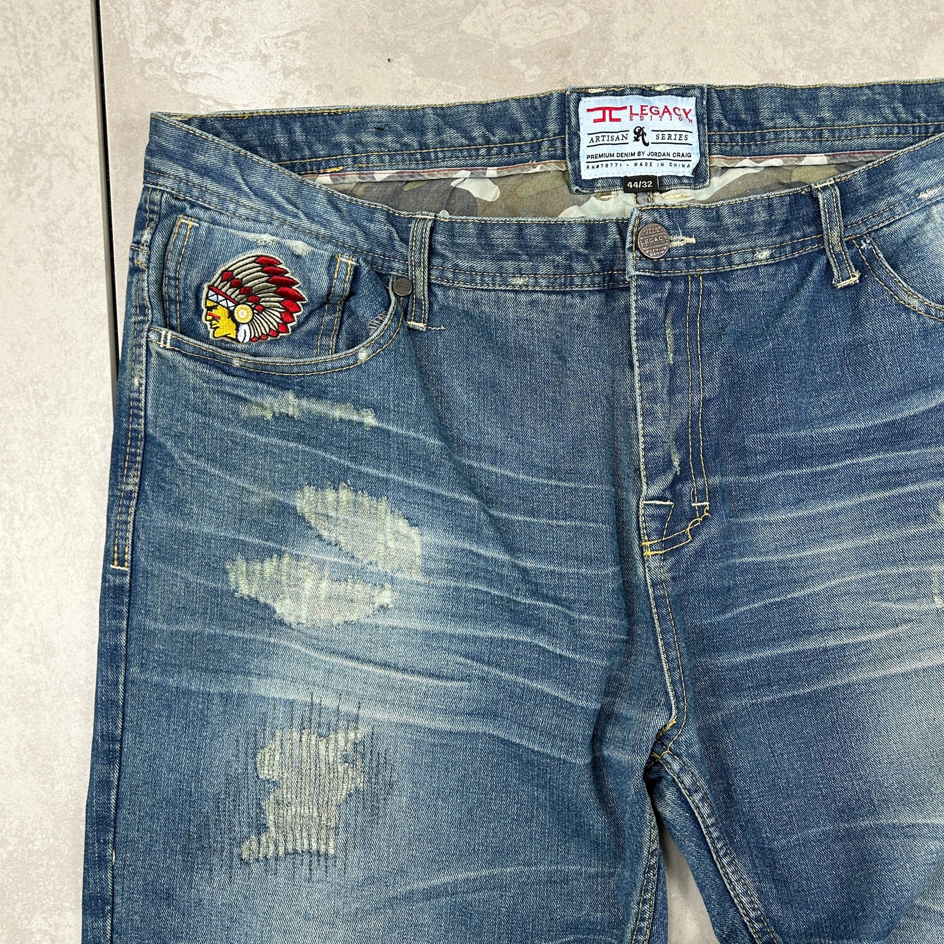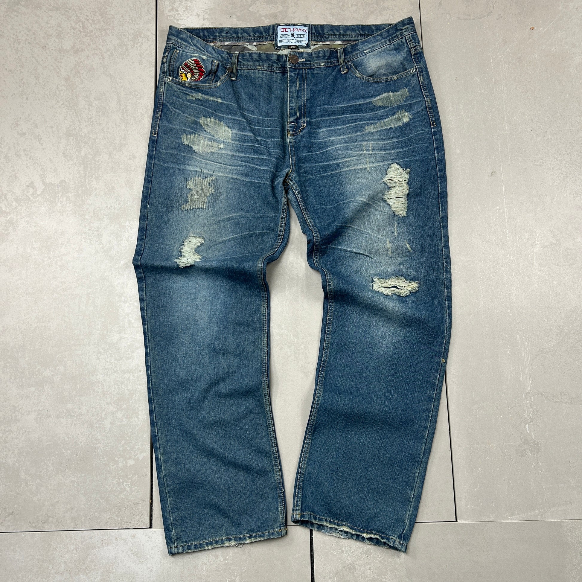 Vintage Embroidered Hip Hop Blue Baggy Jeans - 44