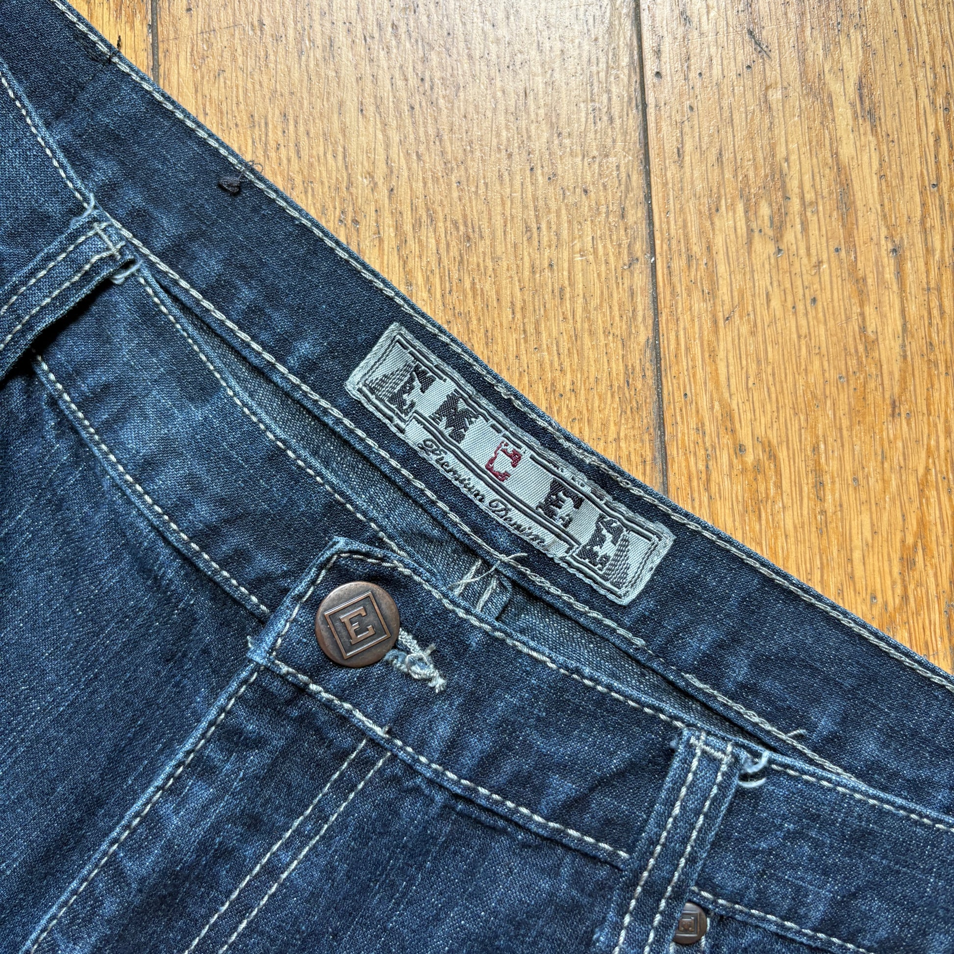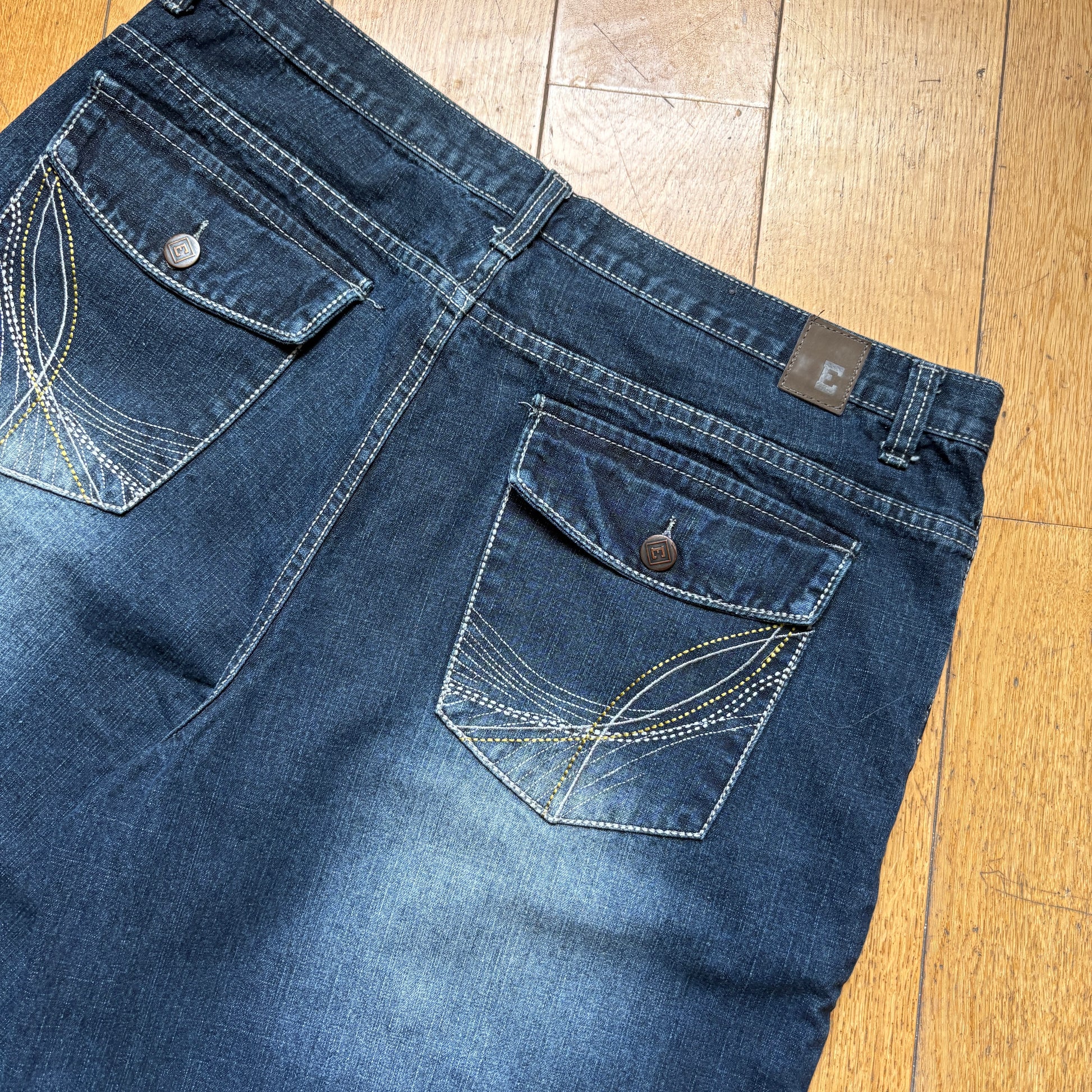 Contrast stitch true religion JNCO Coogi Southpole akademics Fubu skate rocawear embroidered denim jeans jorts skatewear surfwear carpenter cargo japanese denim