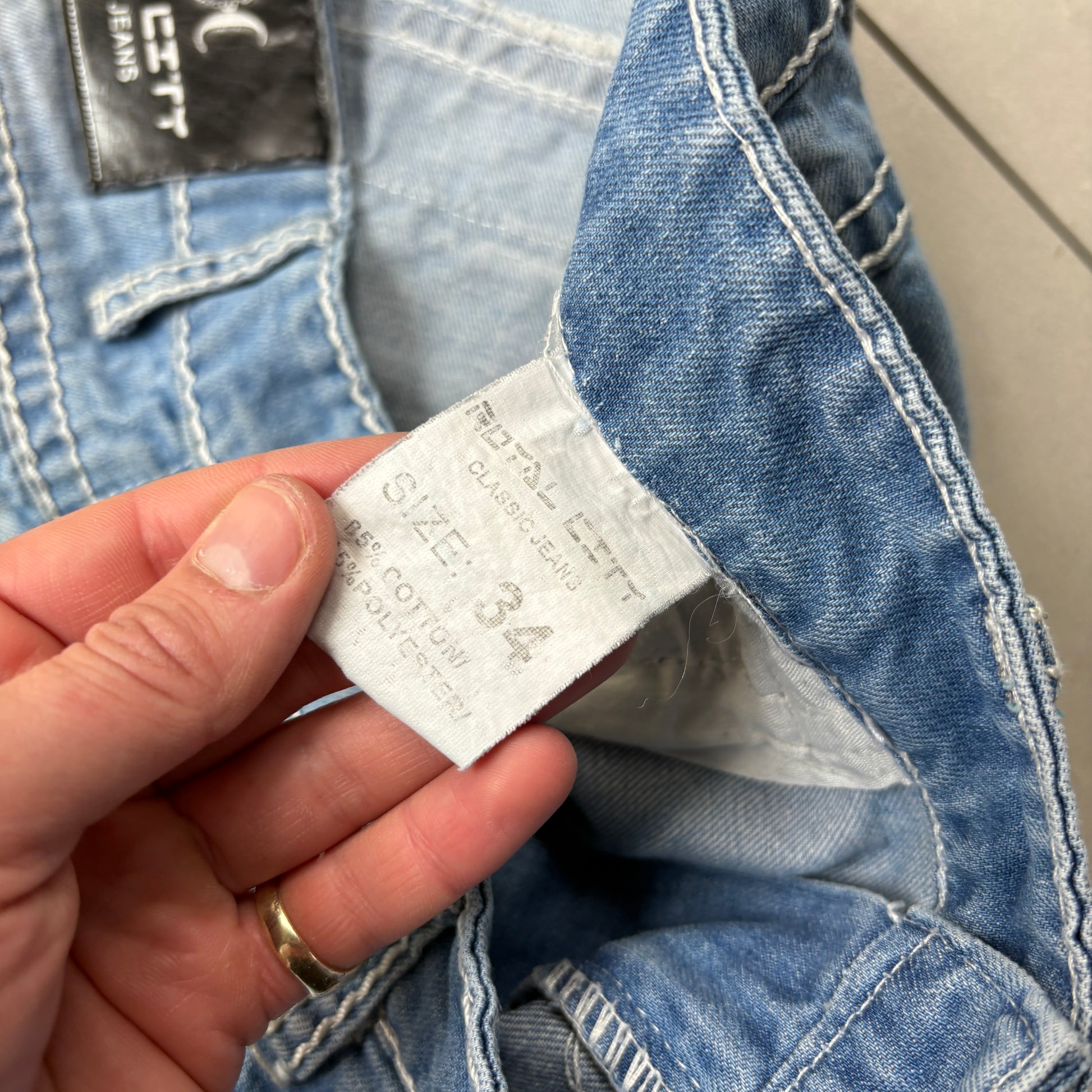 Contrast stitch true religion JNCO Coogi Southpole akademics Fubu skate rocawear embroidered denim jeans