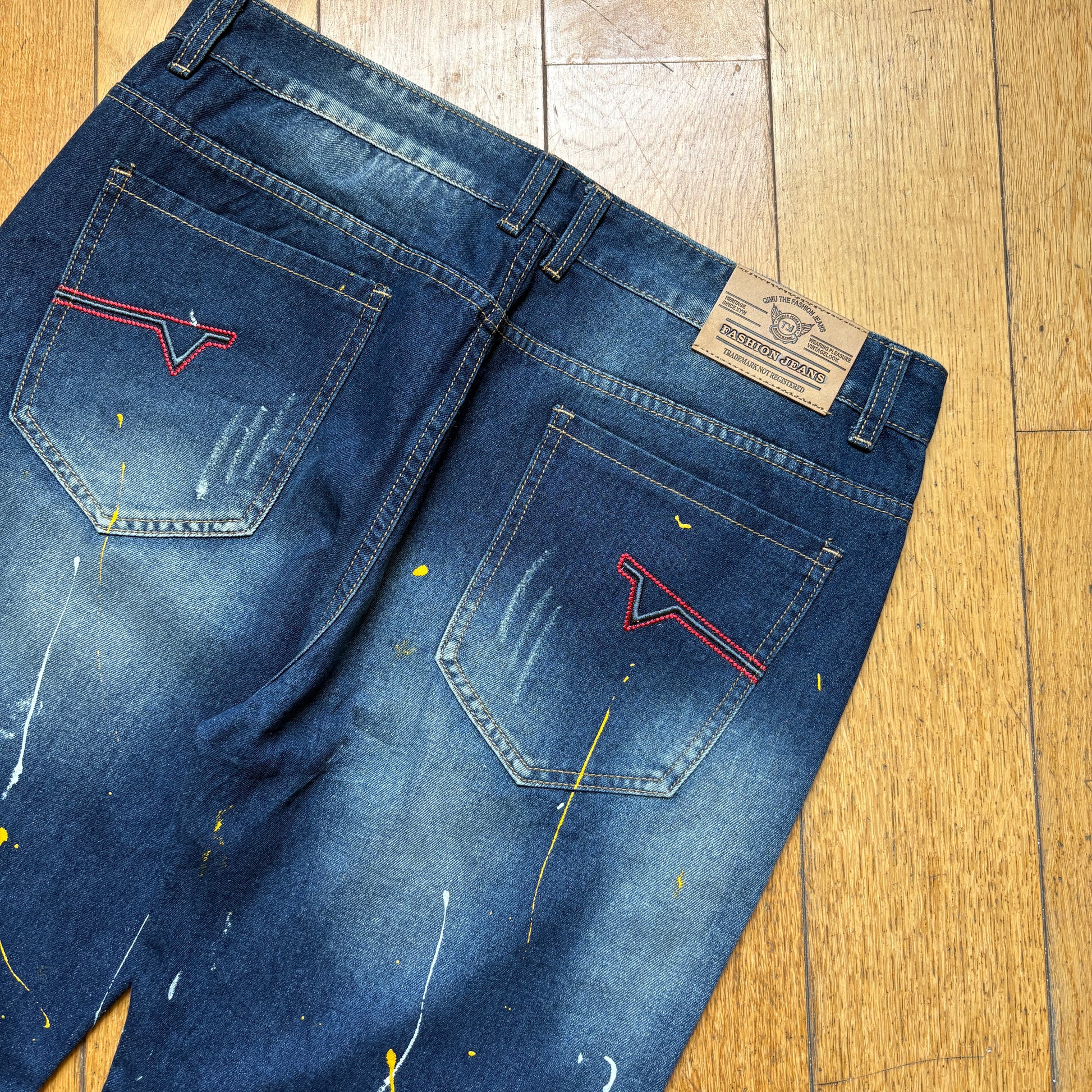 Vintage Embroidered Hip Hop Blue Paint Splatter Shorts Jorts - 36