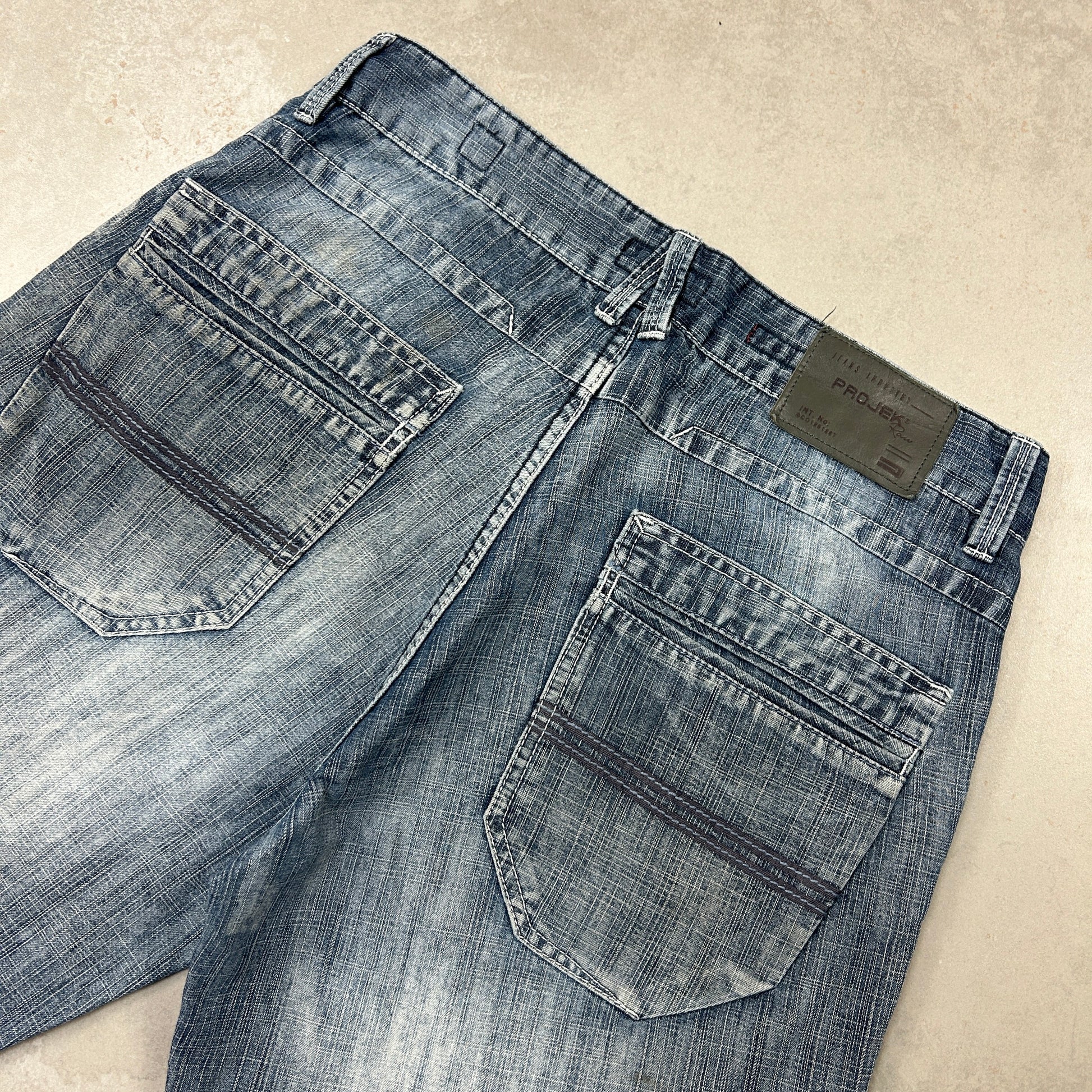 Contrast stitch true religion JNCO Coogi Southpole akademics Fubu skate rocawear embroidered denim jeans jorts skatewear surfwear carpenter cargo japanese denim