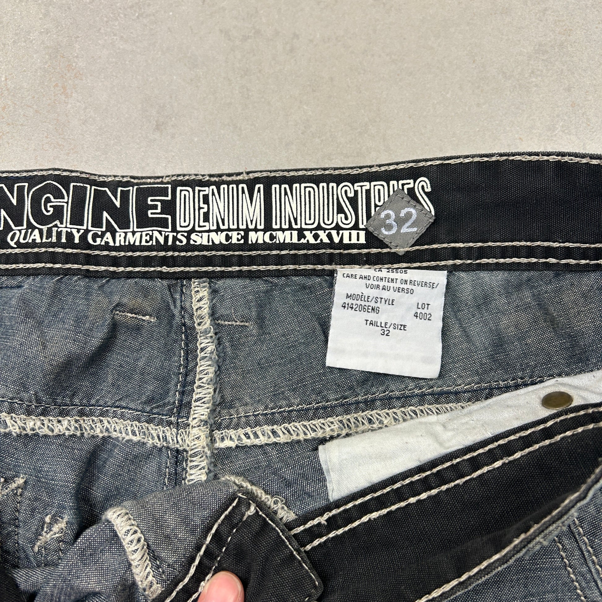 Contrast stitch true religion JNCO Coogi Southpole akademics Fubu skate rocawear embroidered denim jeans jorts skatewear surfwear carpenter cargo japanese denim