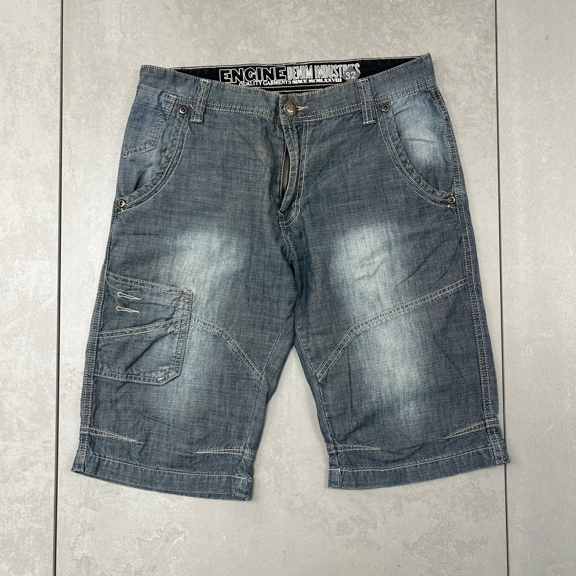 Vintage Embroidered Hip Hop Blue Shorts Jorts -32