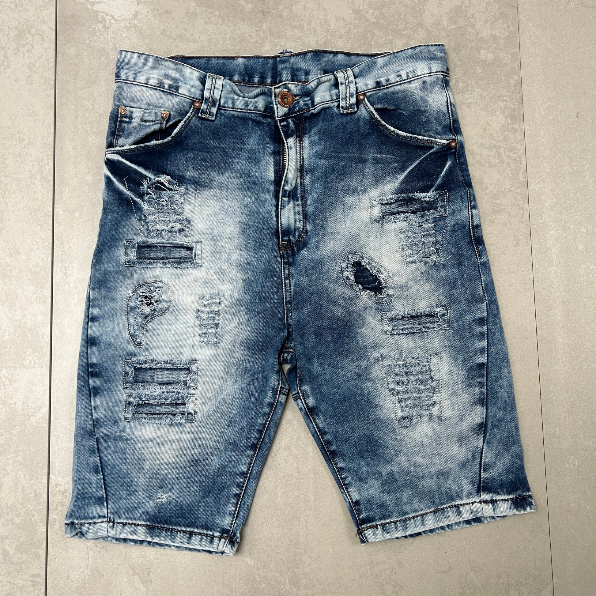 Vintage Embroidered Hip Hop Blue Shorts Jorts - 34