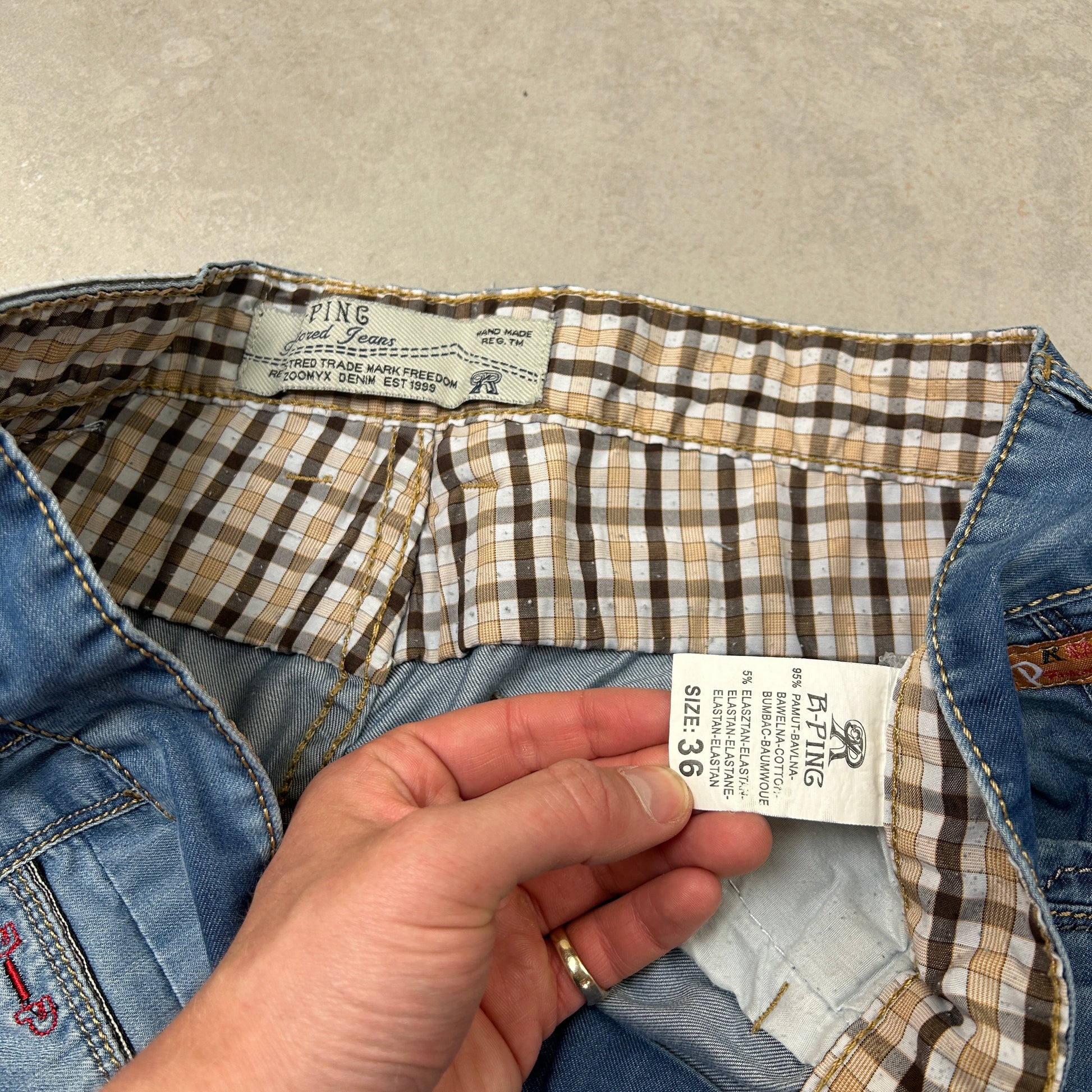 Contrast stitch true religion JNCO Coogi Southpole akademics Fubu skate rocawear embroidered denim jeans jorts skatewear surfwear carpenter cargo japanese denim