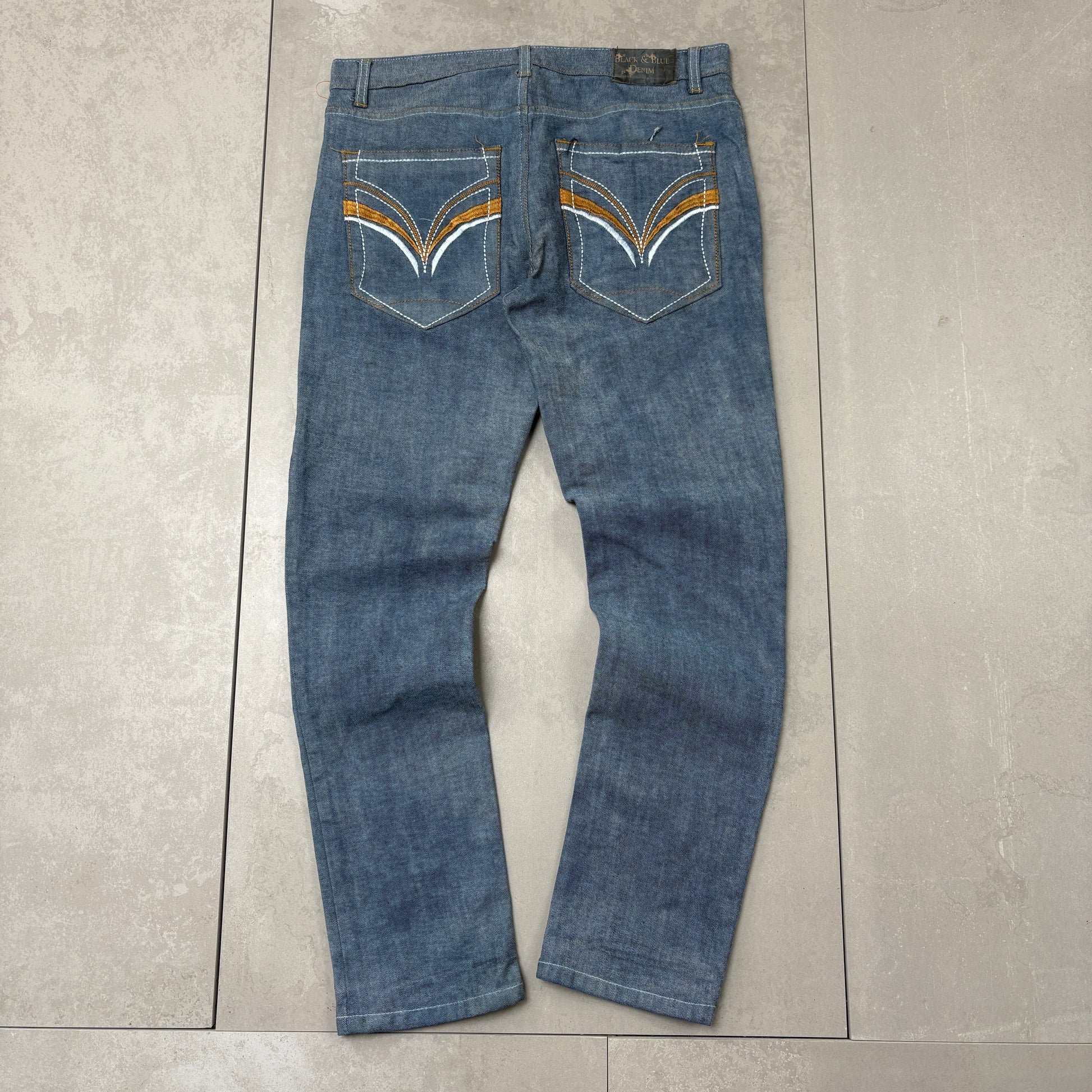 Contrast stitch true religion JNCO Coogi Southpole akademics Fubu skate rocawear embroidered denim jeans