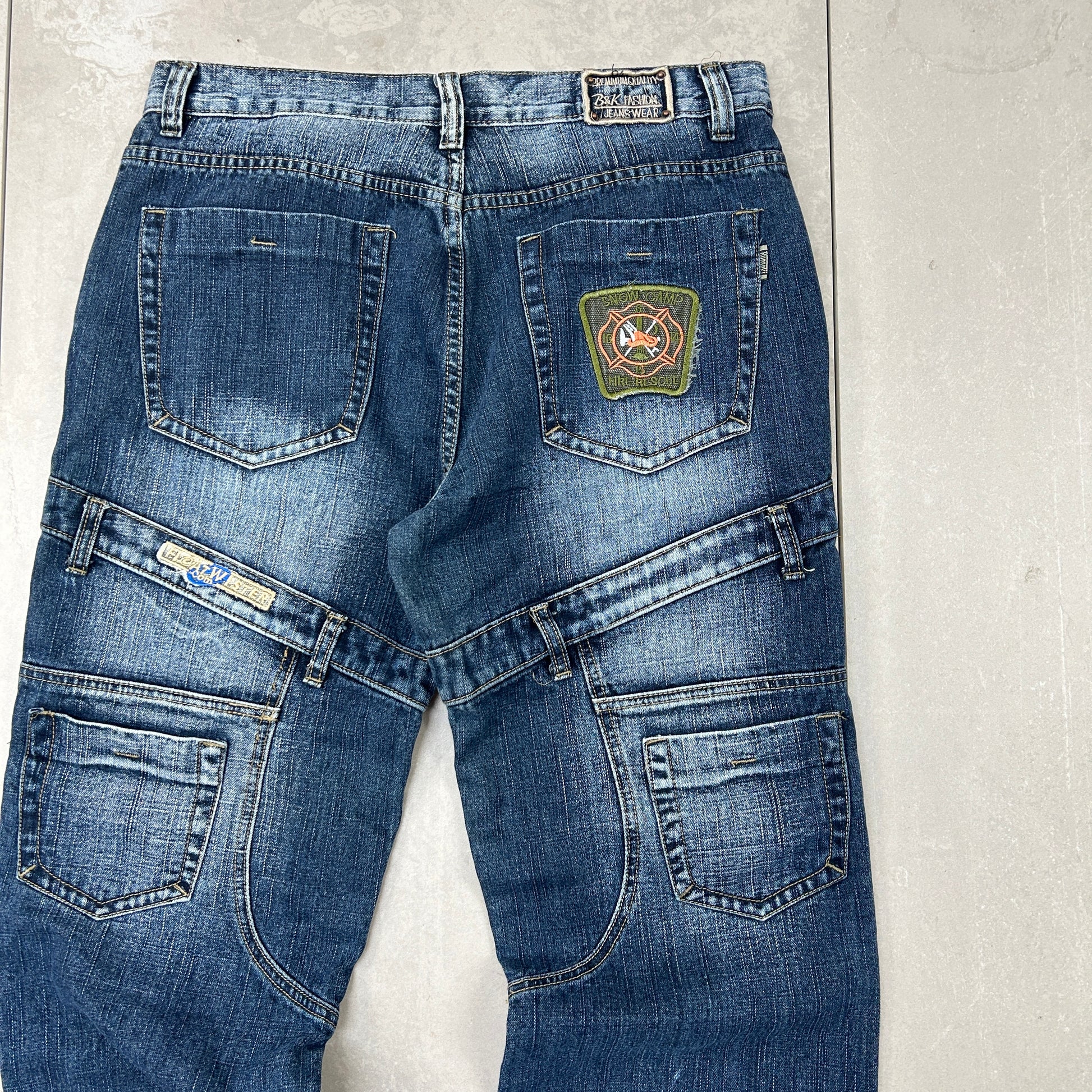 Contrast stitch true religion JNCO Coogi Southpole akademics Fubu skate rocawear embroidered denim jeans