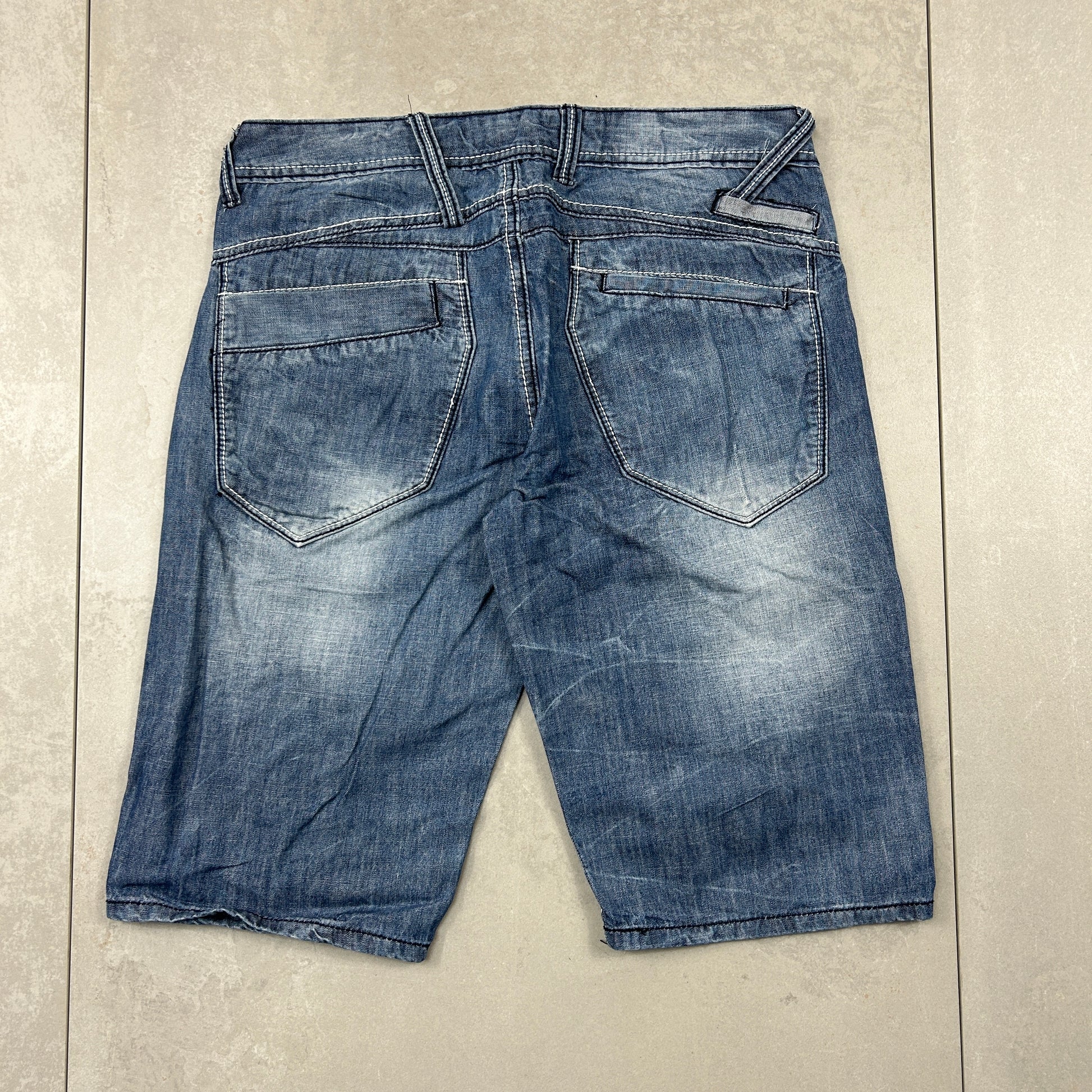 Vintage Embroidered Hip Hop Shorts Blue Jorts - 34