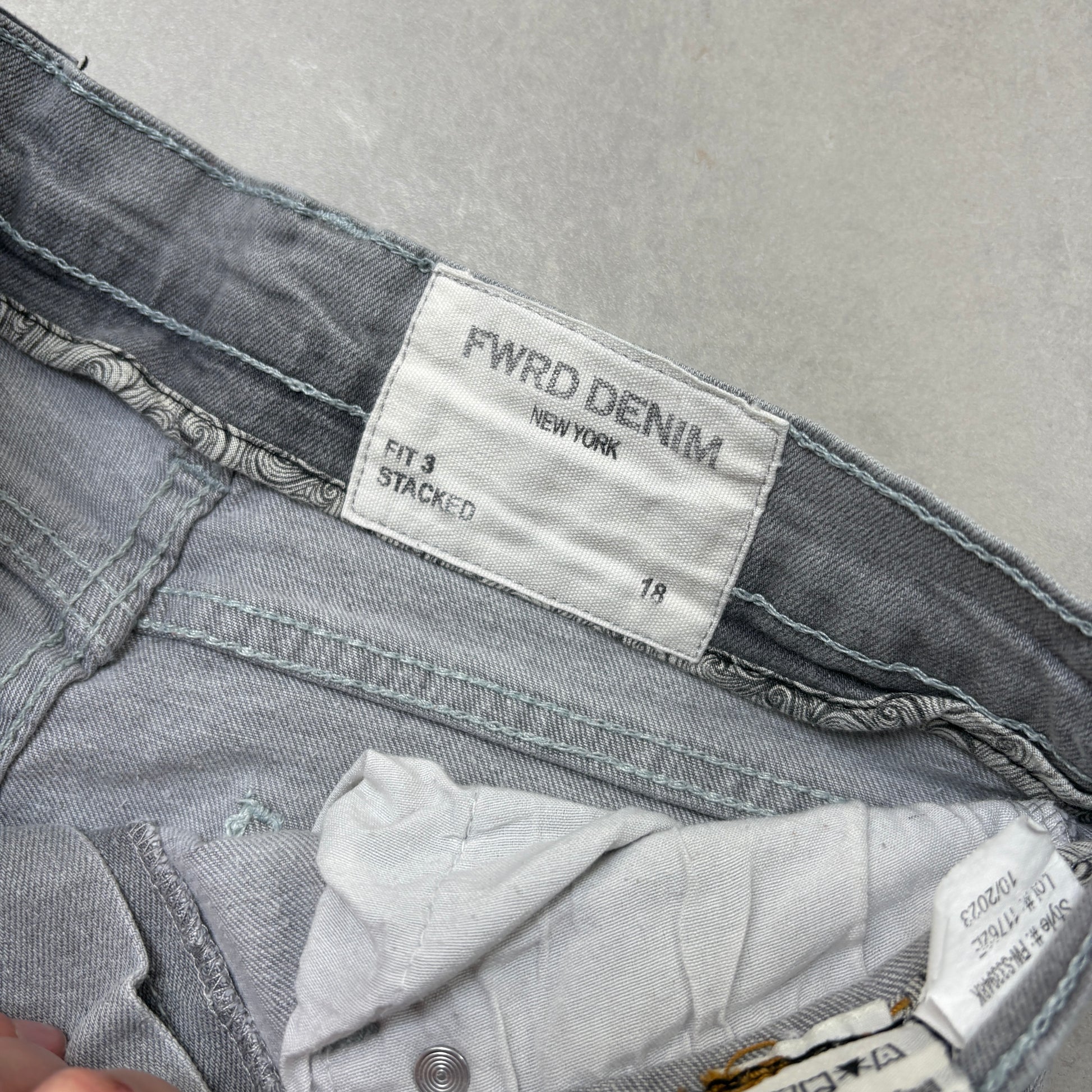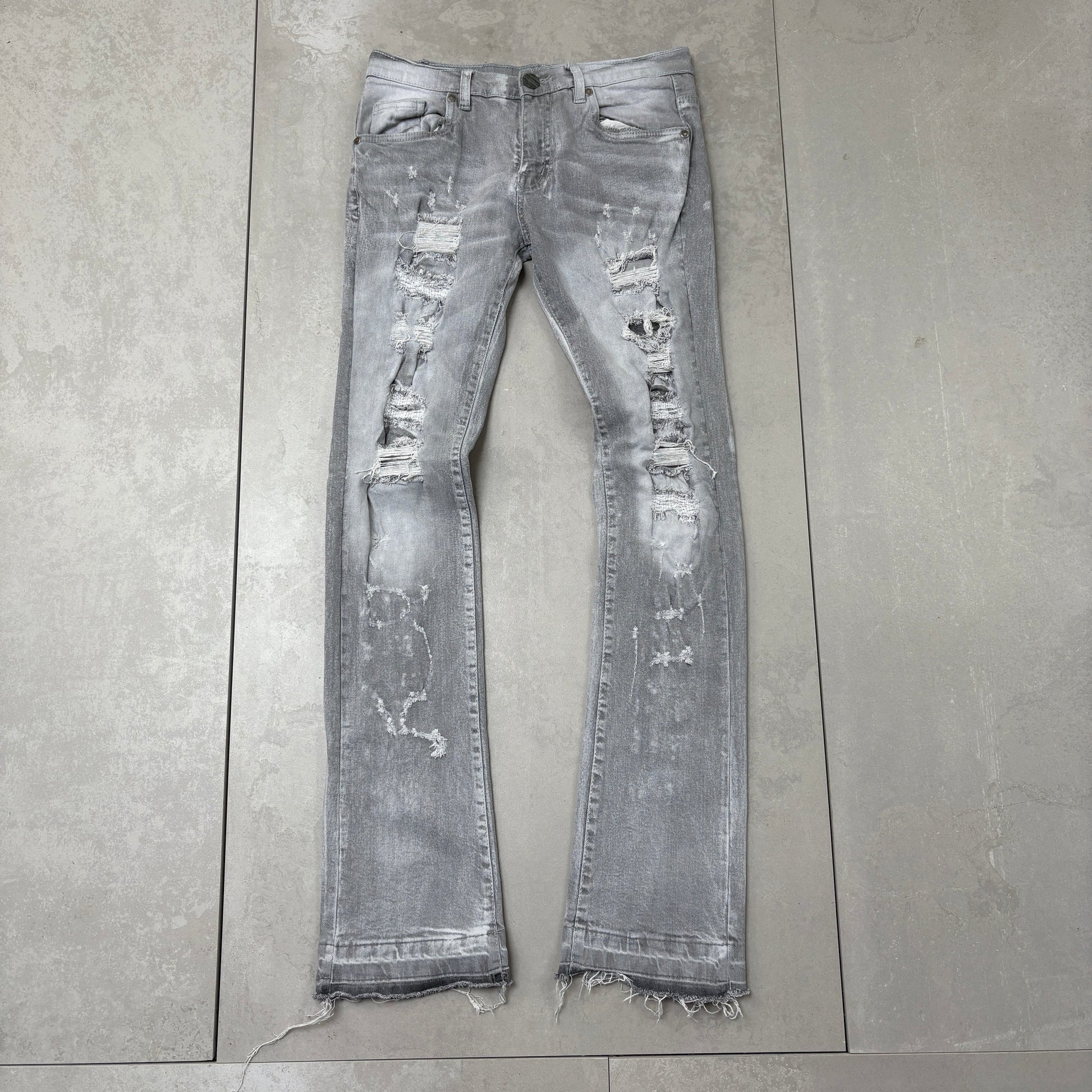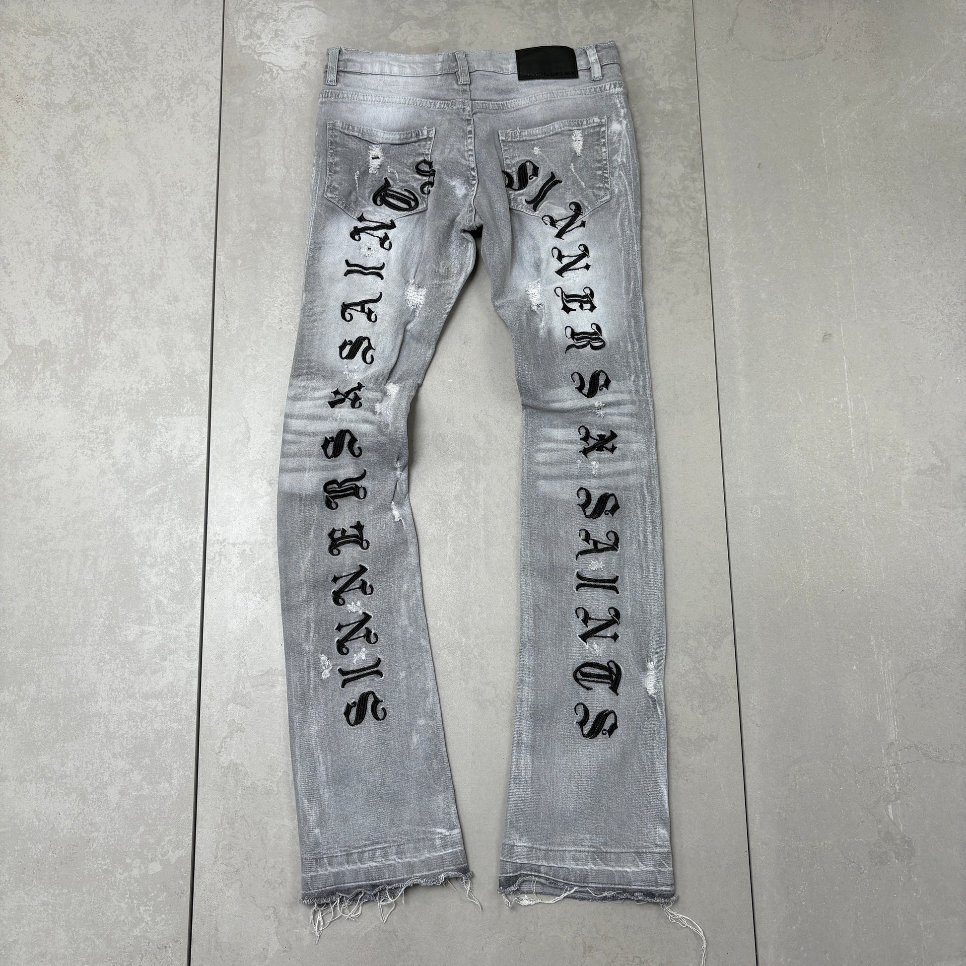 Vintage Embroidered Hip Hop Skinny Flared Bootcut Grey Jeans - 28