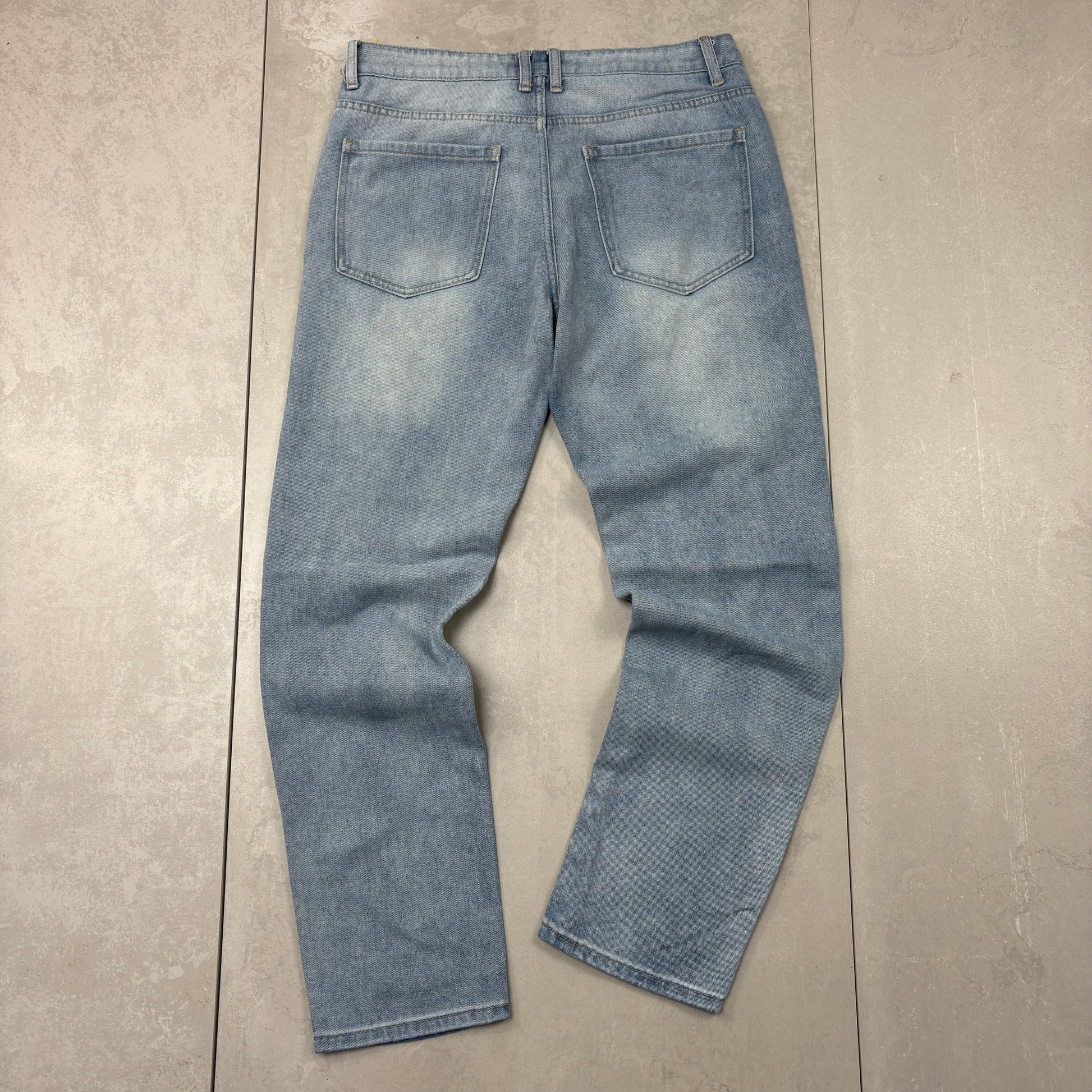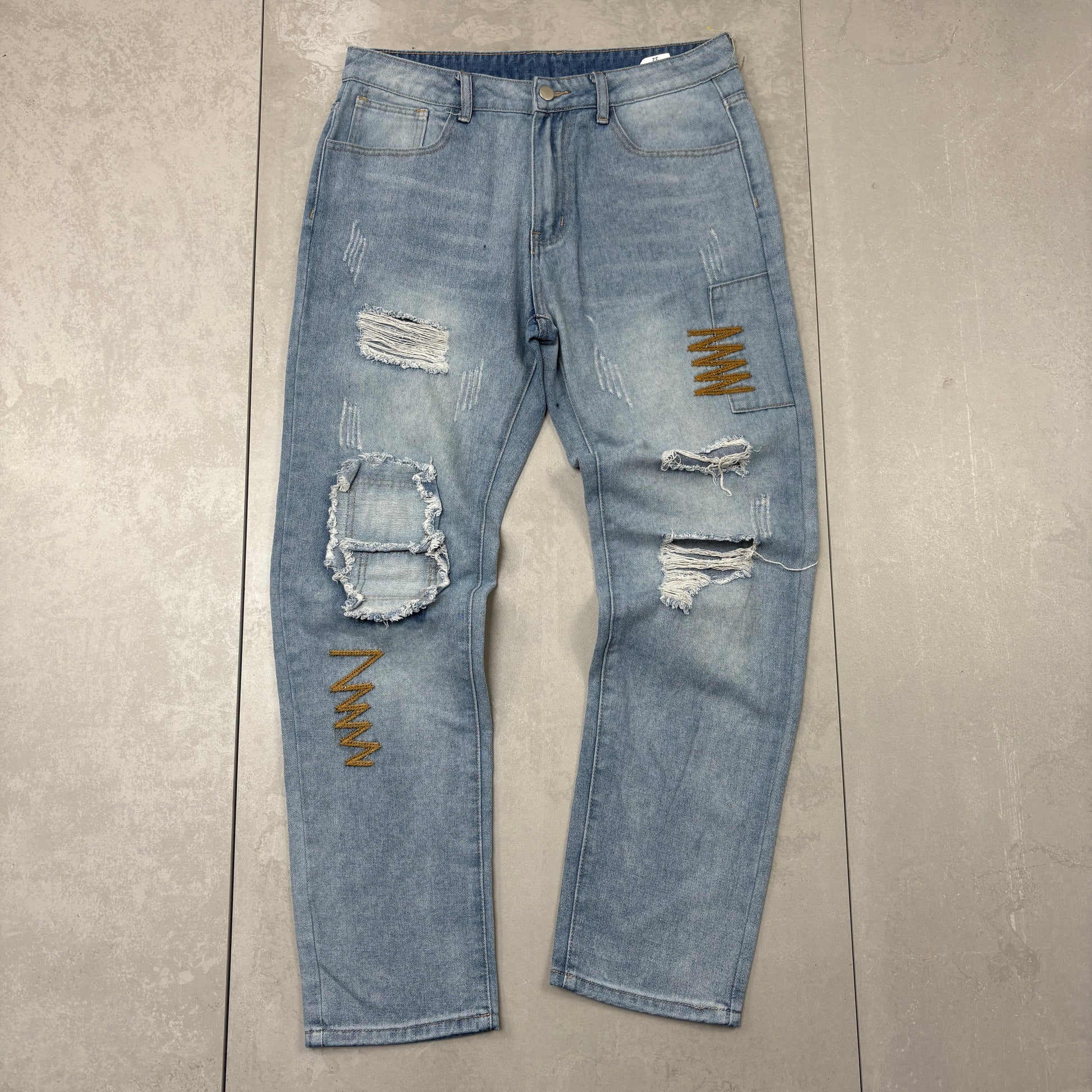 Vintage Embroidered Hip Hop Straight Blue Jeans - 34