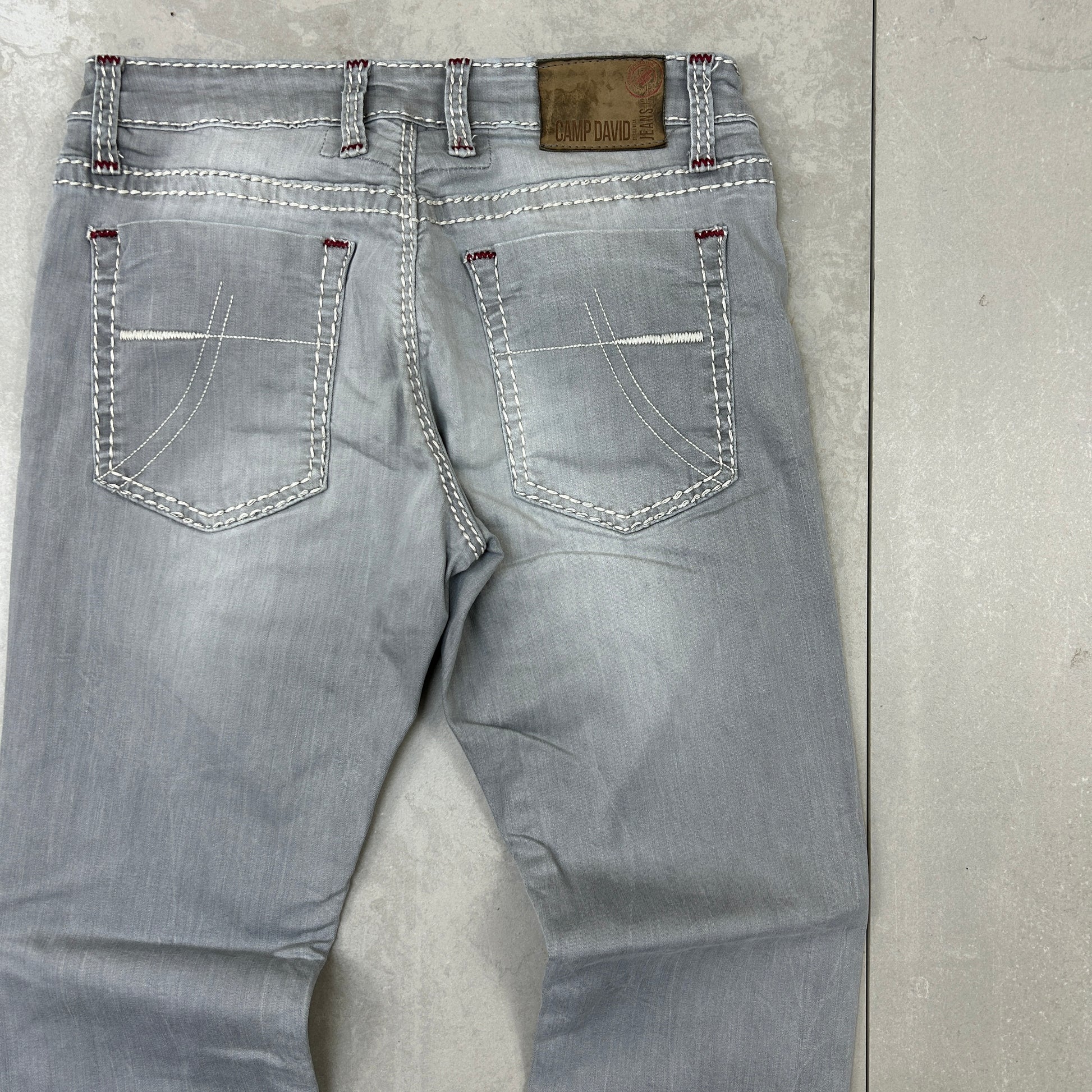 Contrast stitch true religion JNCO Coogi Southpole akademics Fubu skate rocawear embroidered denim jeans