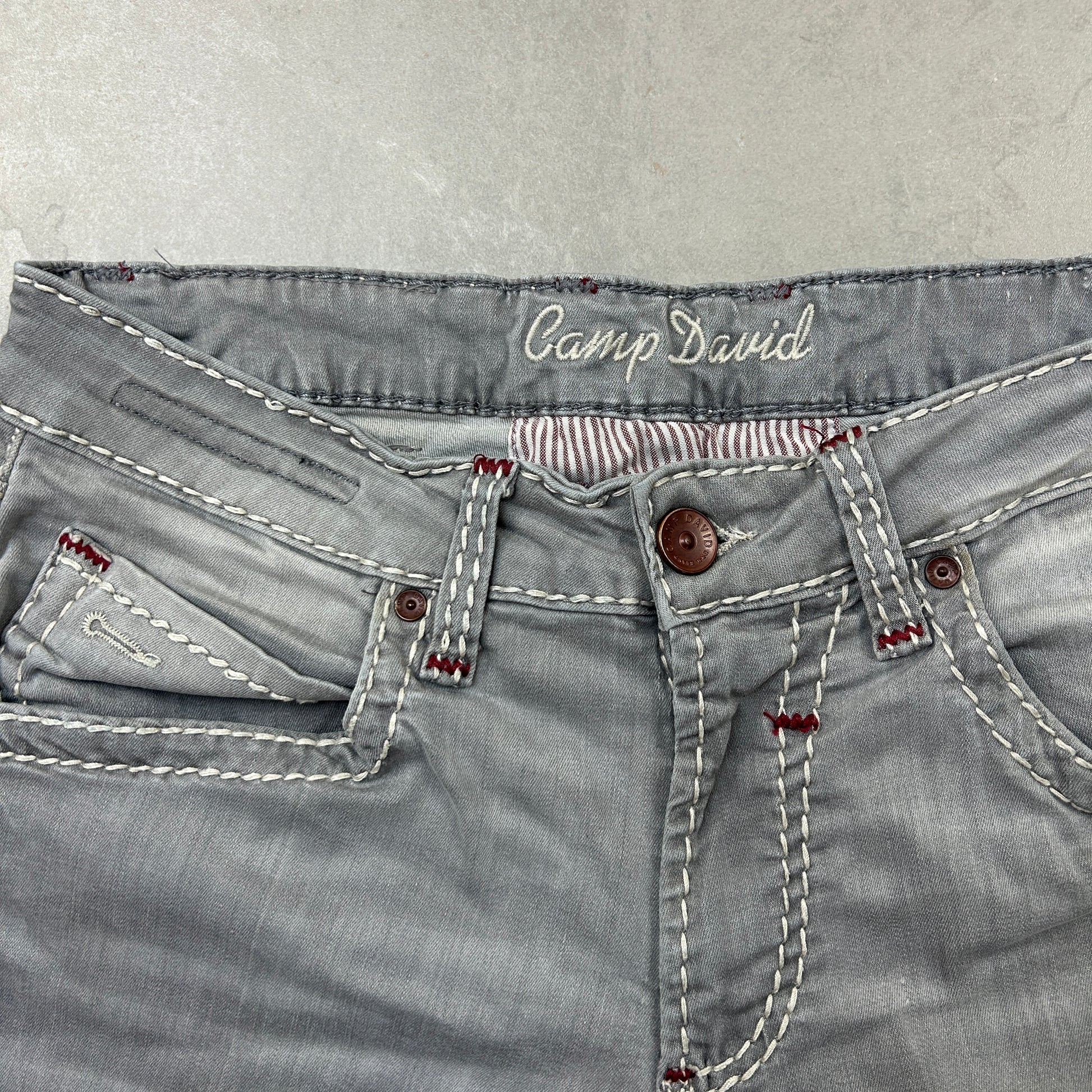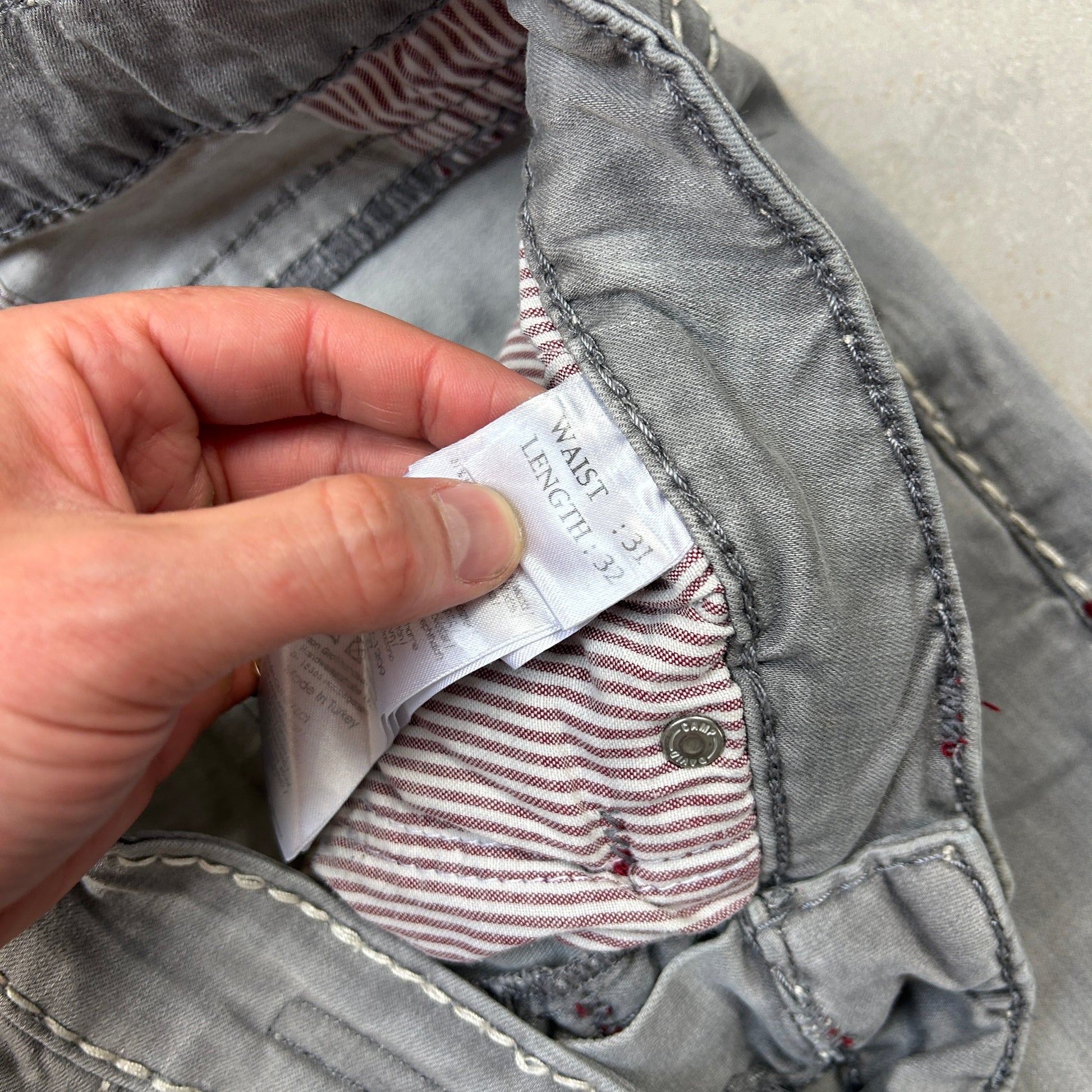 Vintage Embroidered Hip Hop Straight Grey Jeans - 31