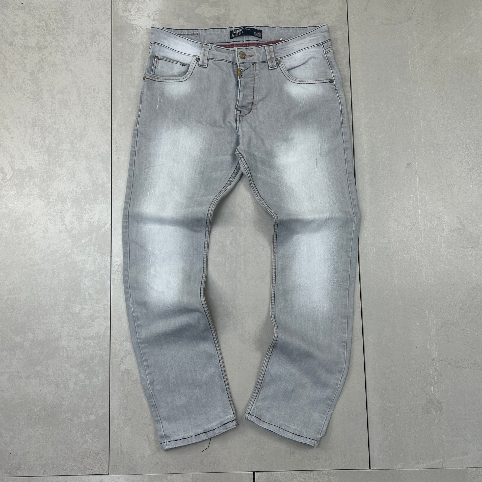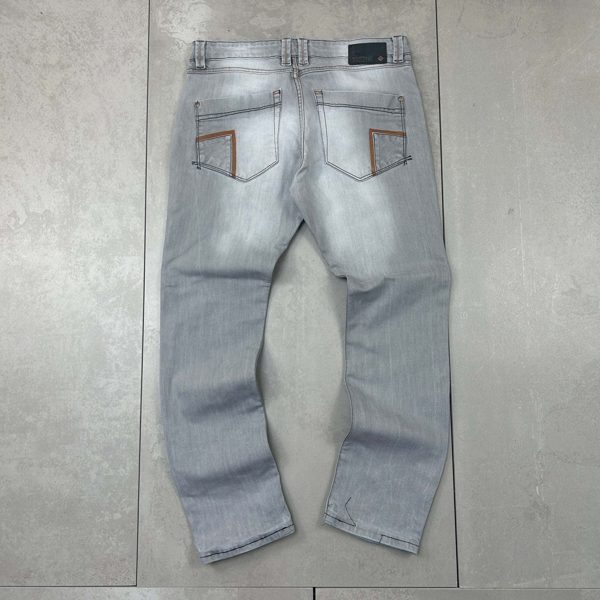 Vintage Embroidered Hip Hop Straight Grey Jeans - 34