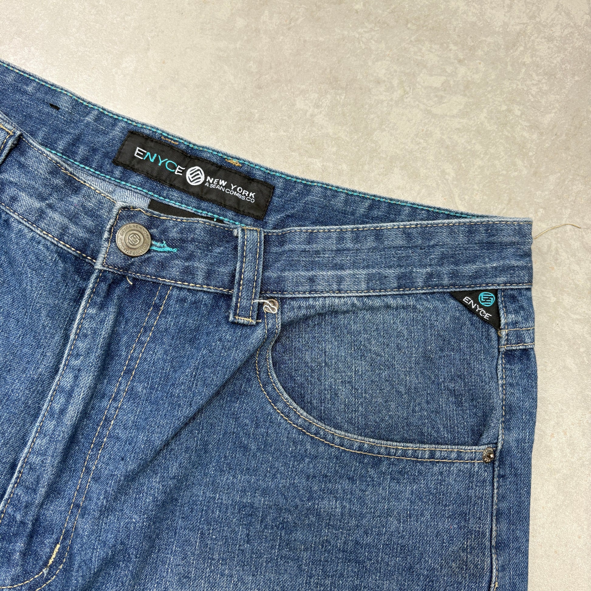 Vintage Enyce Embroidered Blue Hip Hop Baggy Shorts Jorts - 36