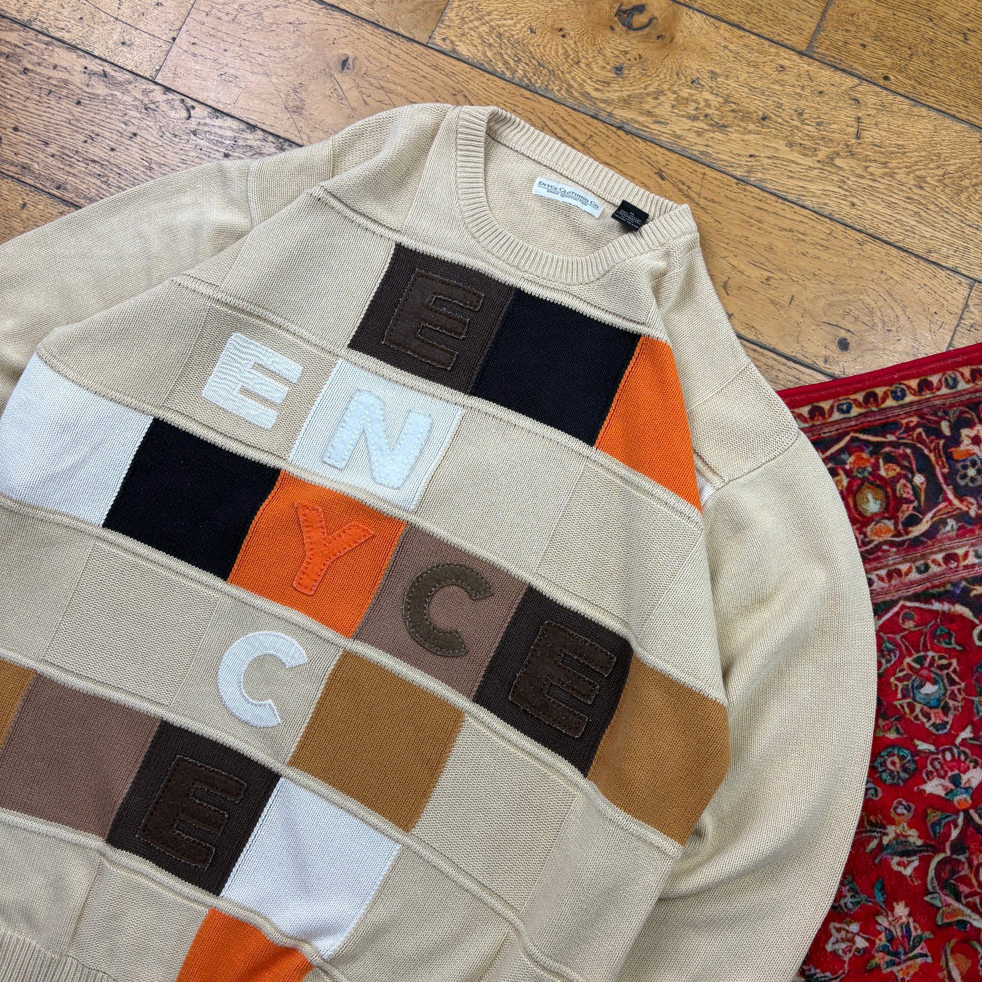 Vintage Enyce Hip Hop Cream Chunky Knit Jumper - XL