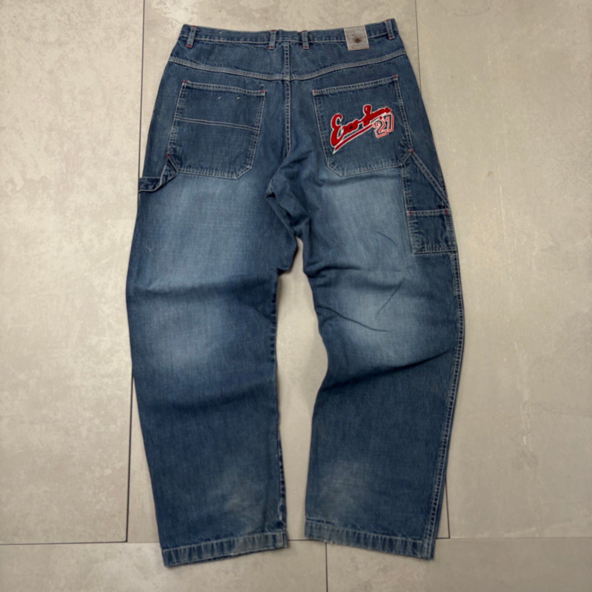 Vintage Exco Embroidered Hip Hop Baggy Blue Jeans - 36