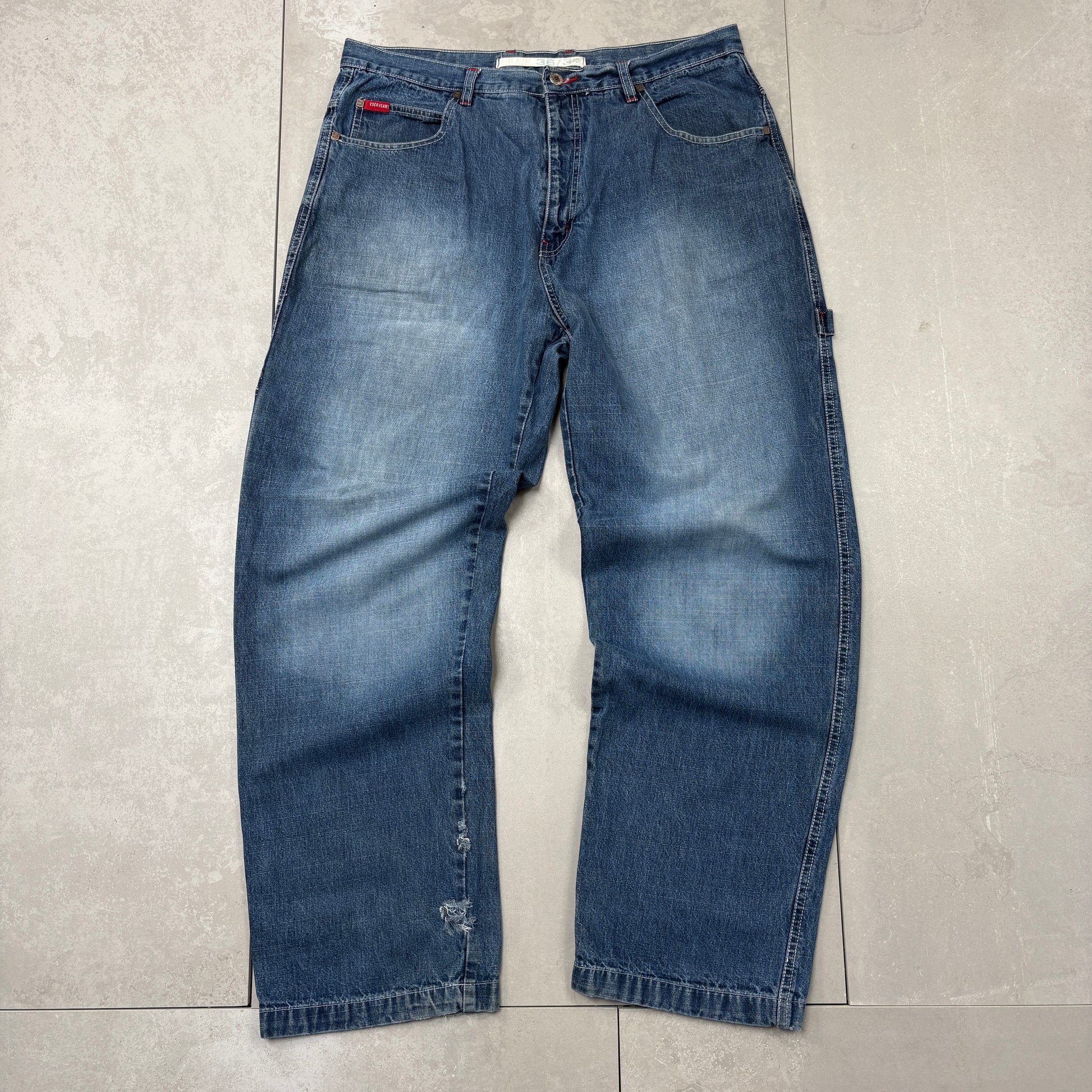 Contrast stitch true religion JNCO Coogi Southpole akademics Fubu skate rocawear embroidered denim jeans