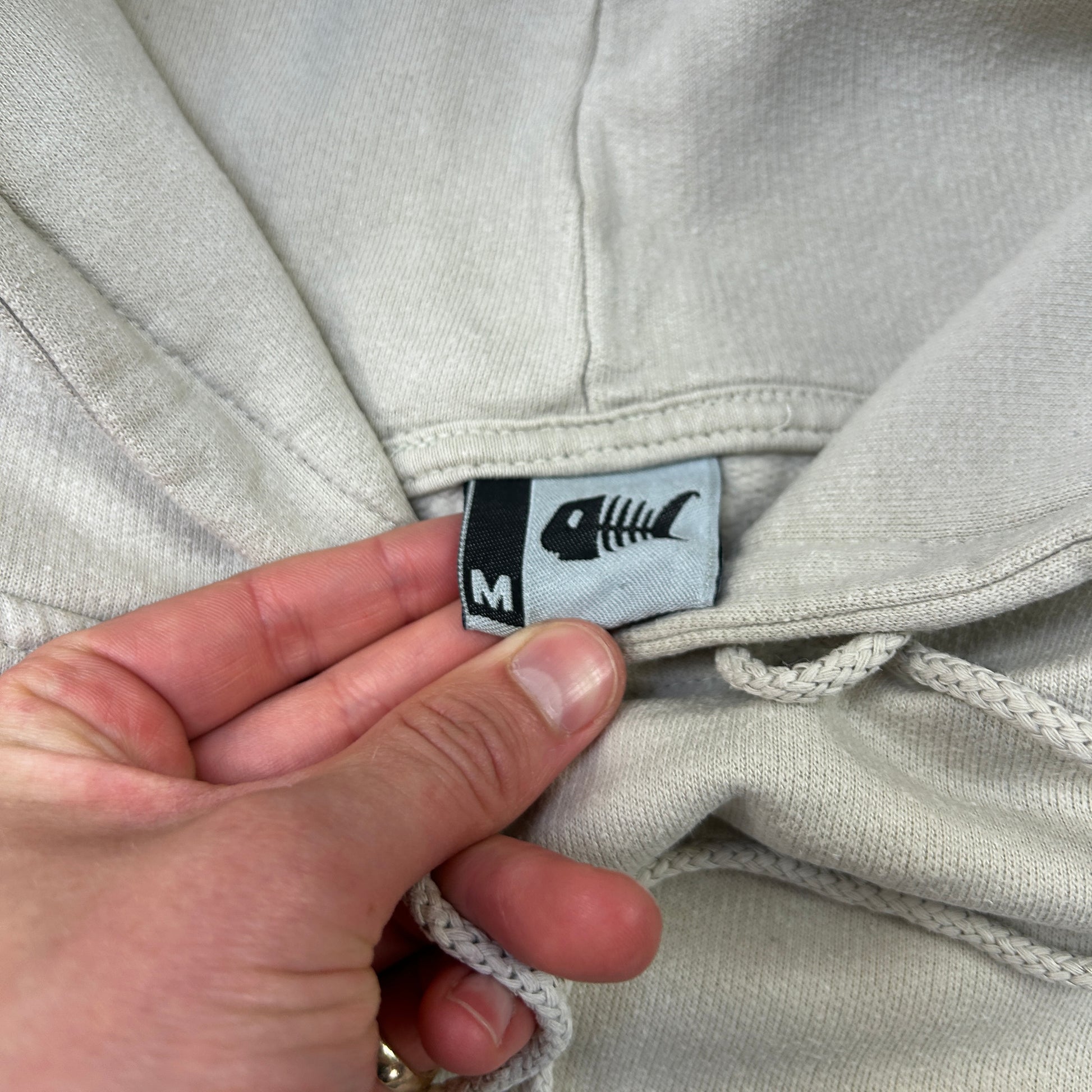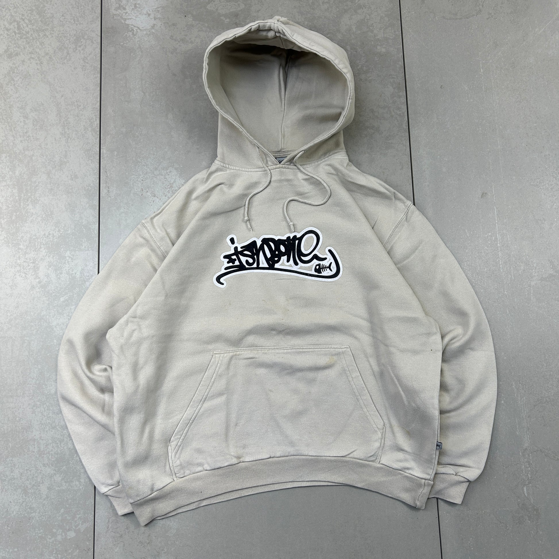 Vintage Fishbone Cream Surfwear Embroidered Hoodie Sweatshirt - M