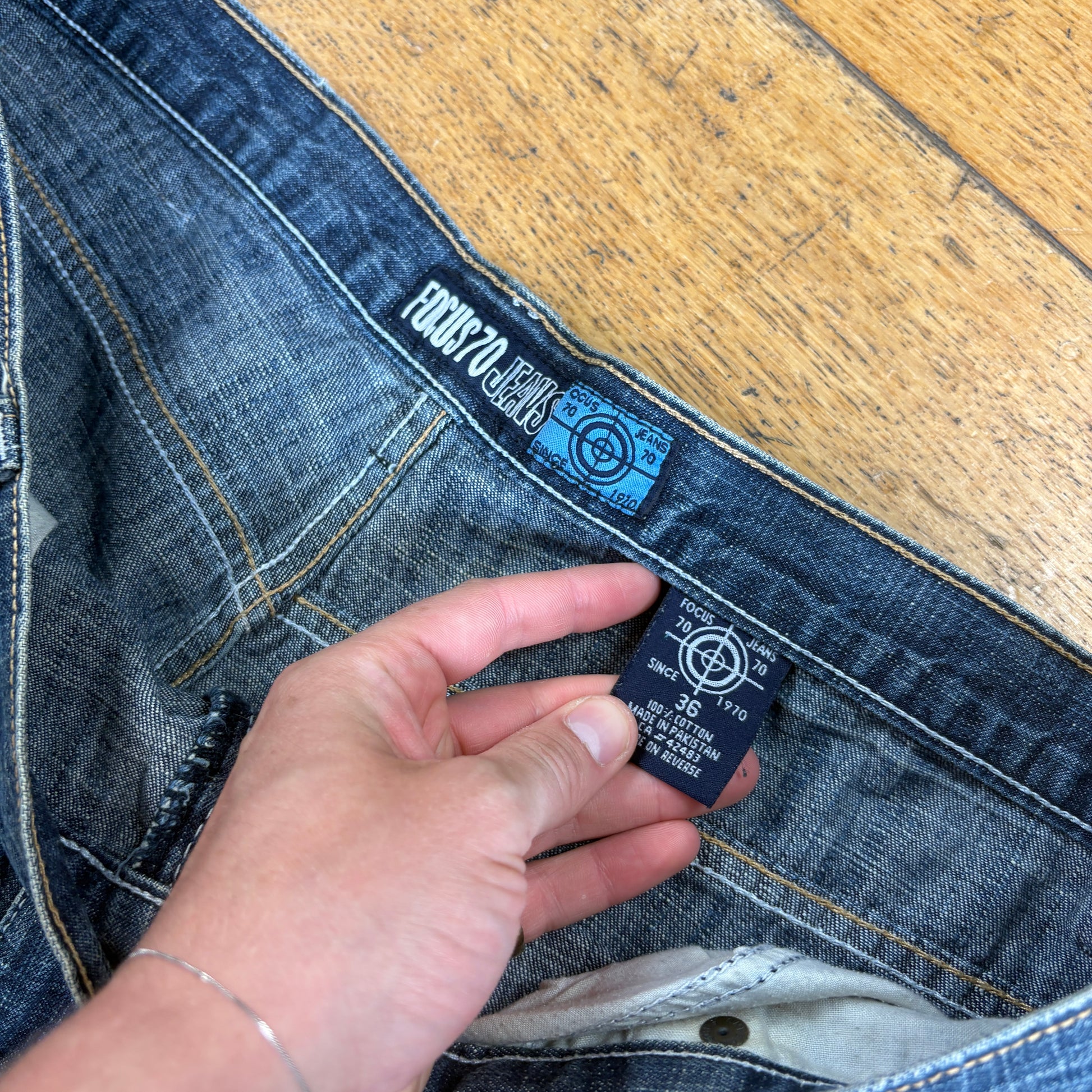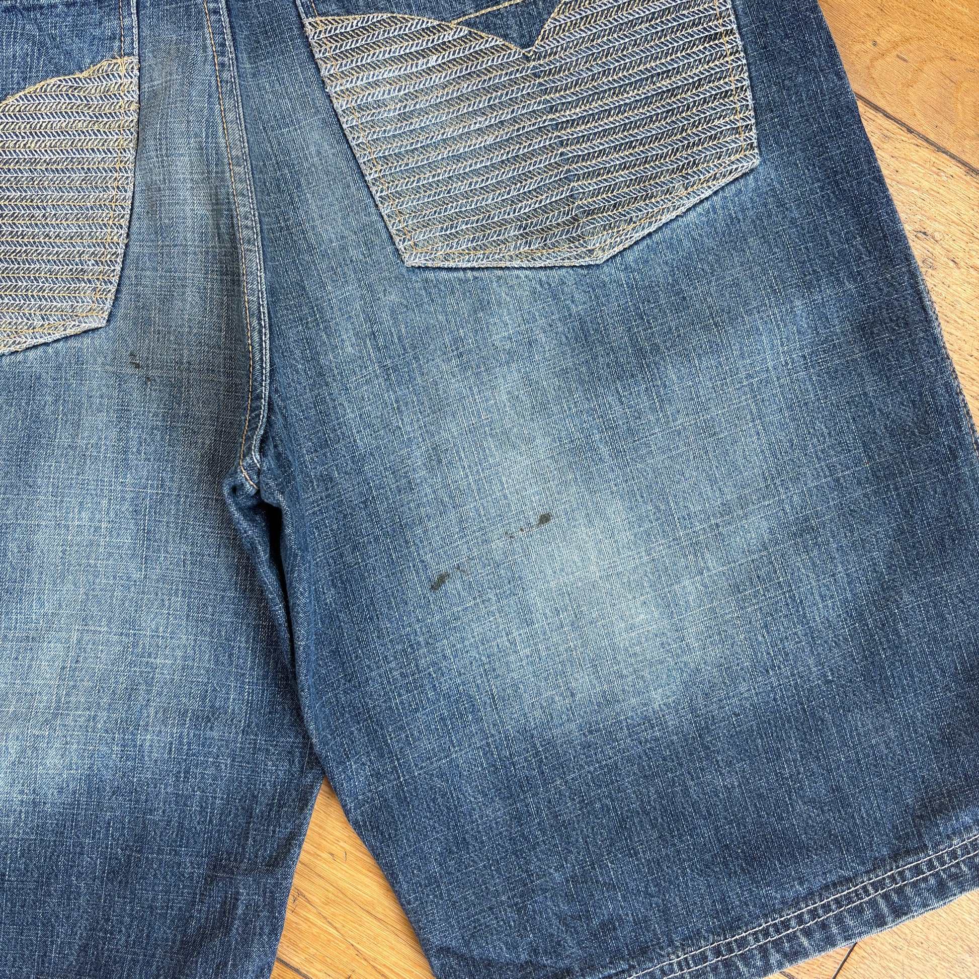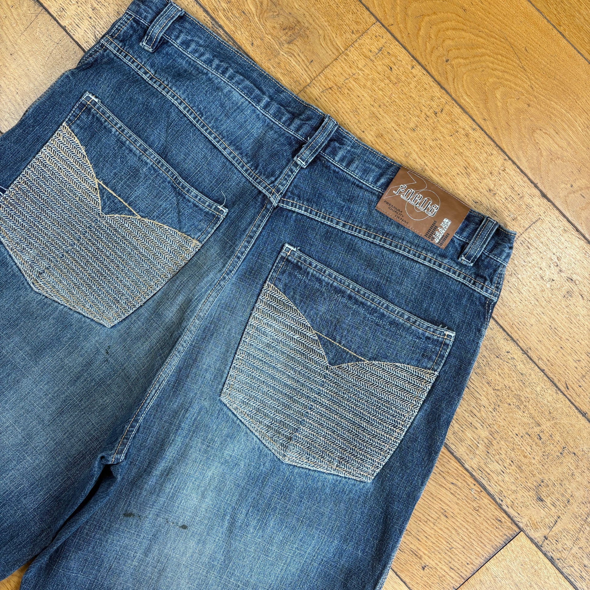 Vintage Focus70 Embroidered Hip Hop Blue Baggy Shorts Jorts - 38