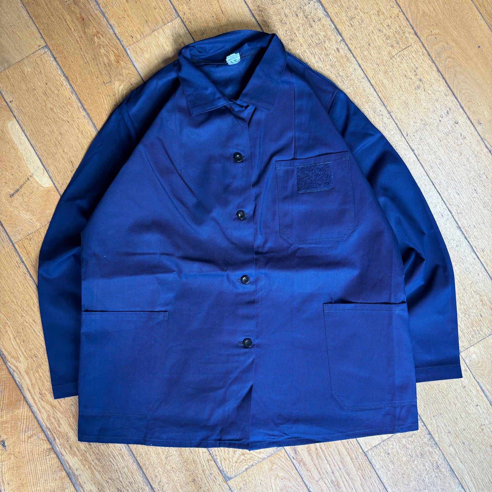 Vintage French Chore Workwear Jacket Blue Overcoat - L