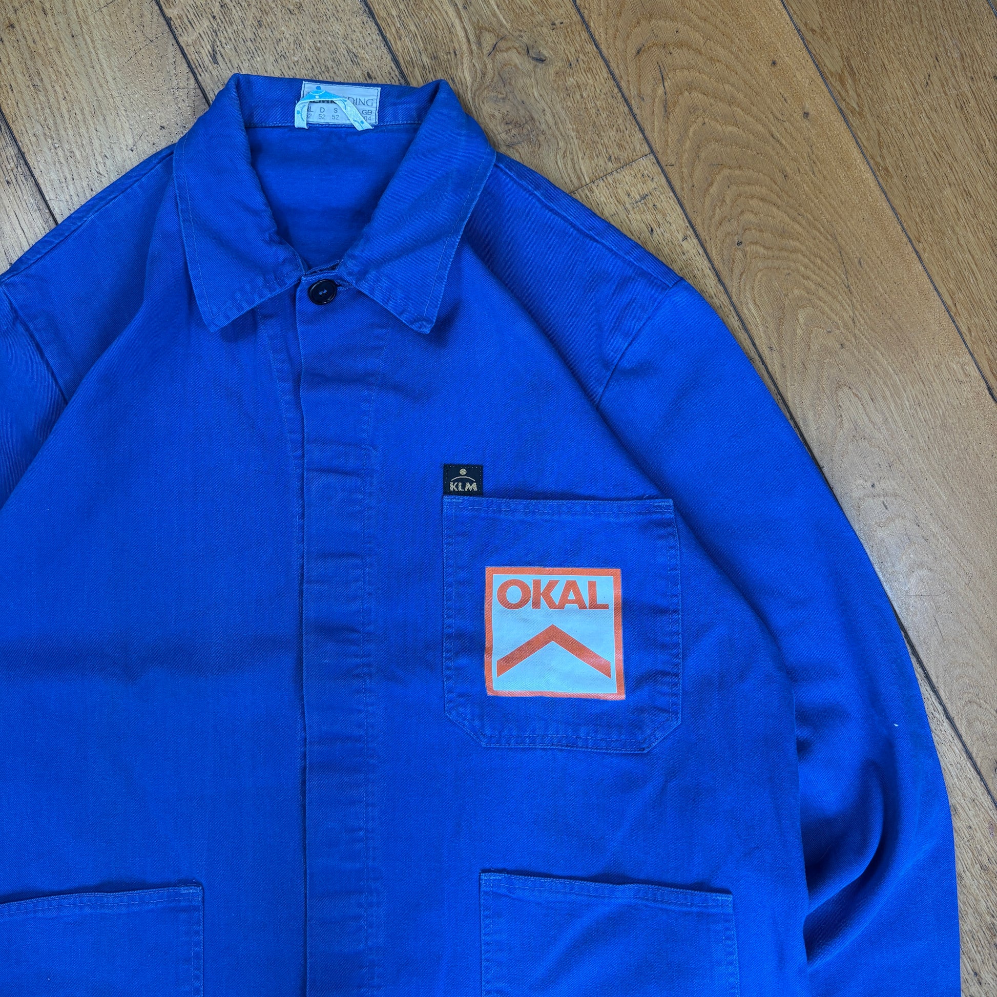 Vintage French Chore Workwear Jacket Blue Overcoat - L