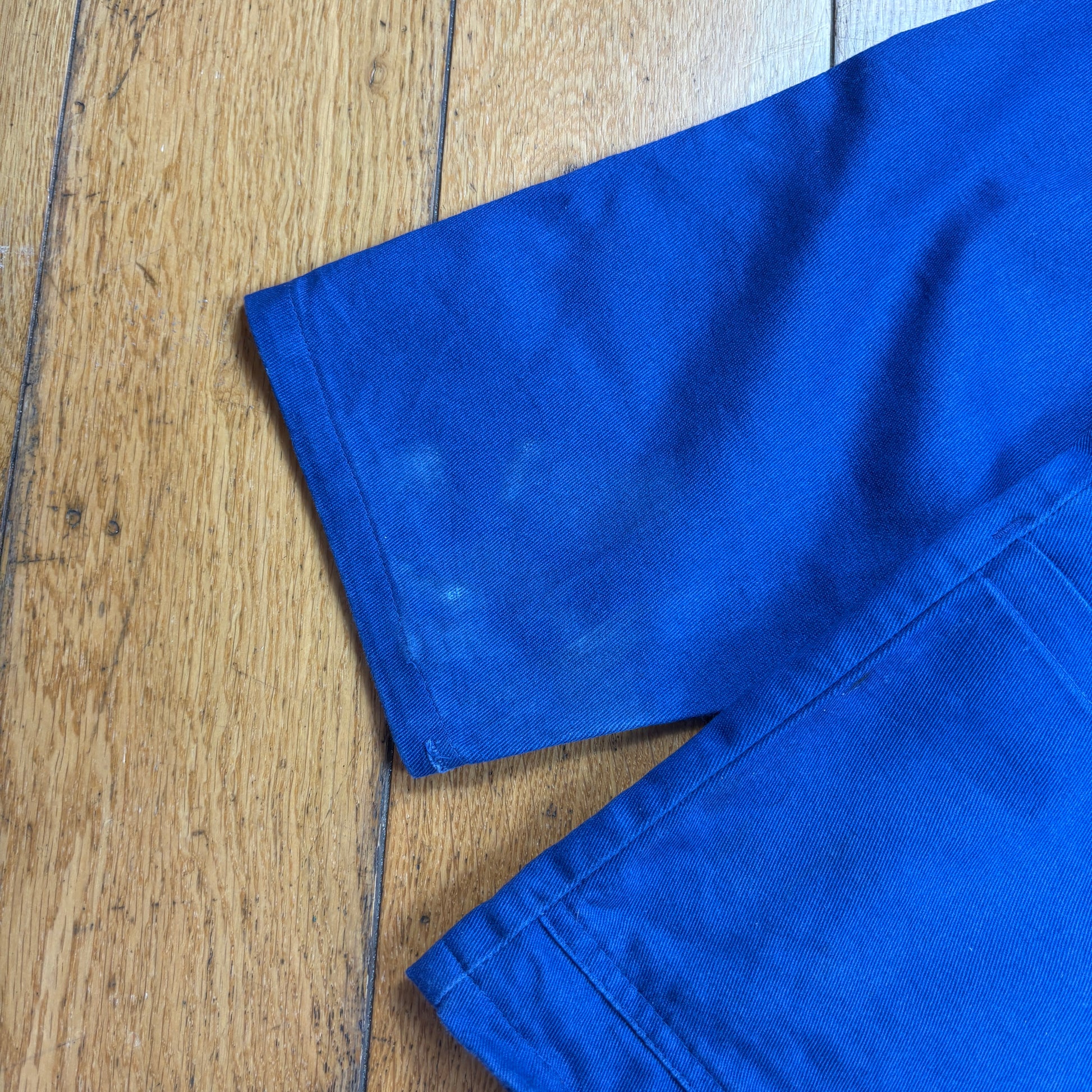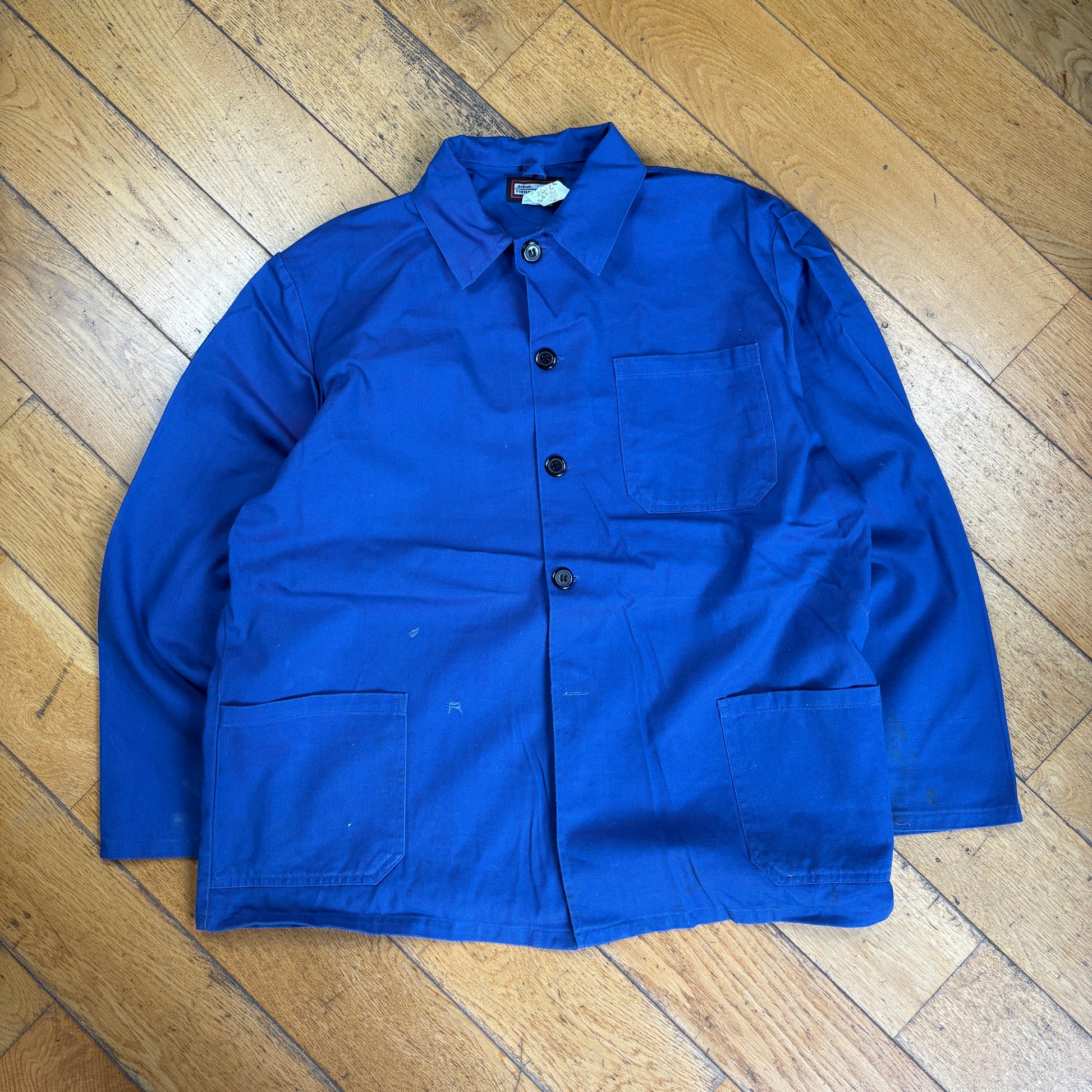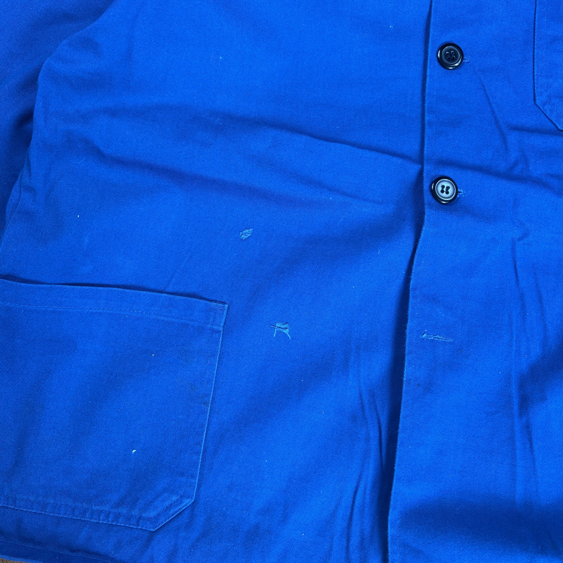 Vintage French Chore Workwear Jacket Blue Overcoat - L