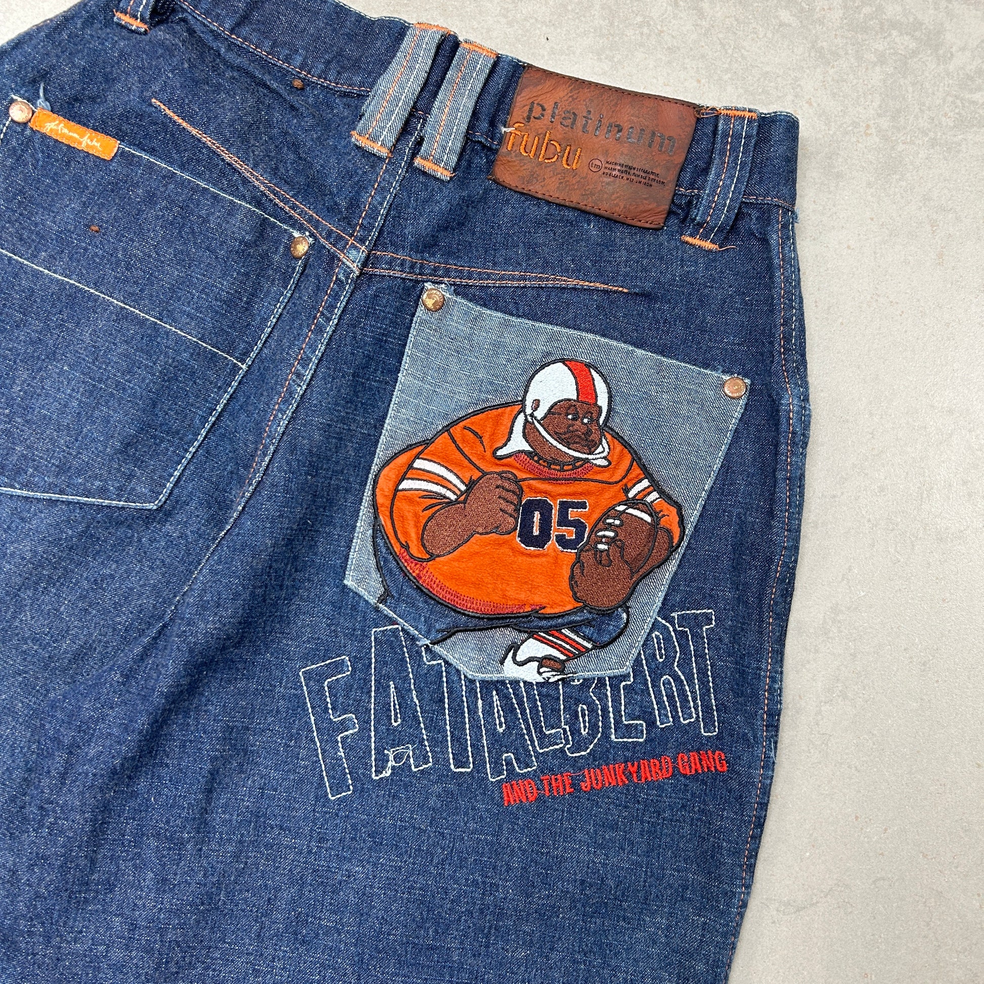 Contrast stitch true religion JNCO Coogi Southpole akademics Fubu skate rocawear embroidered denim jeans jorts skatewear surfwear carpenter cargo japanese denim