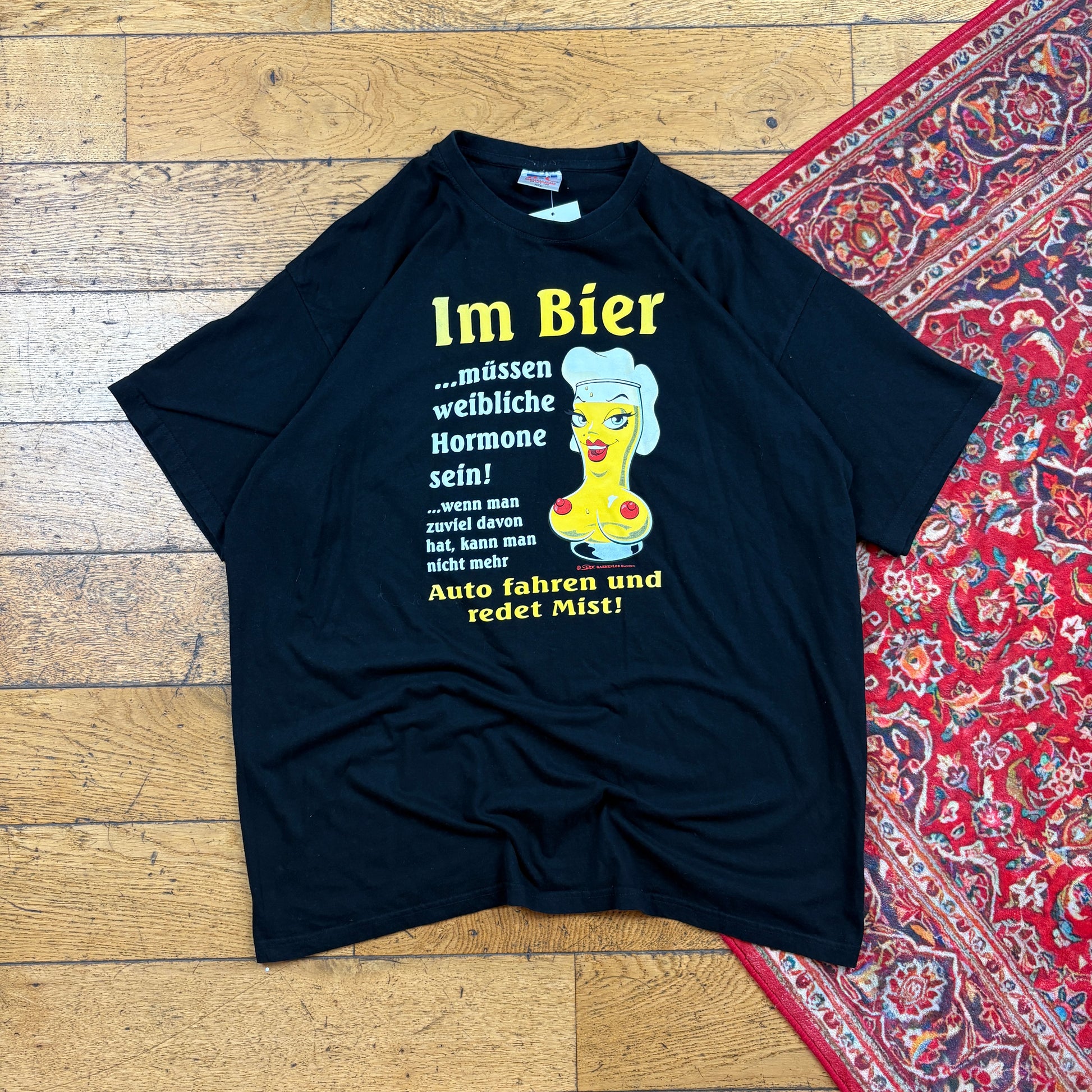 Vintage Funny Beer Black Graphic T-Shirt - XL