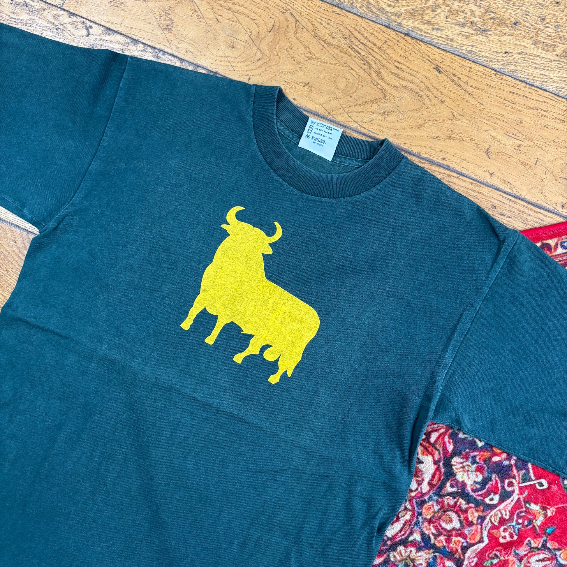 Vintage Funny Green Bull Graphic T-Shirt - S