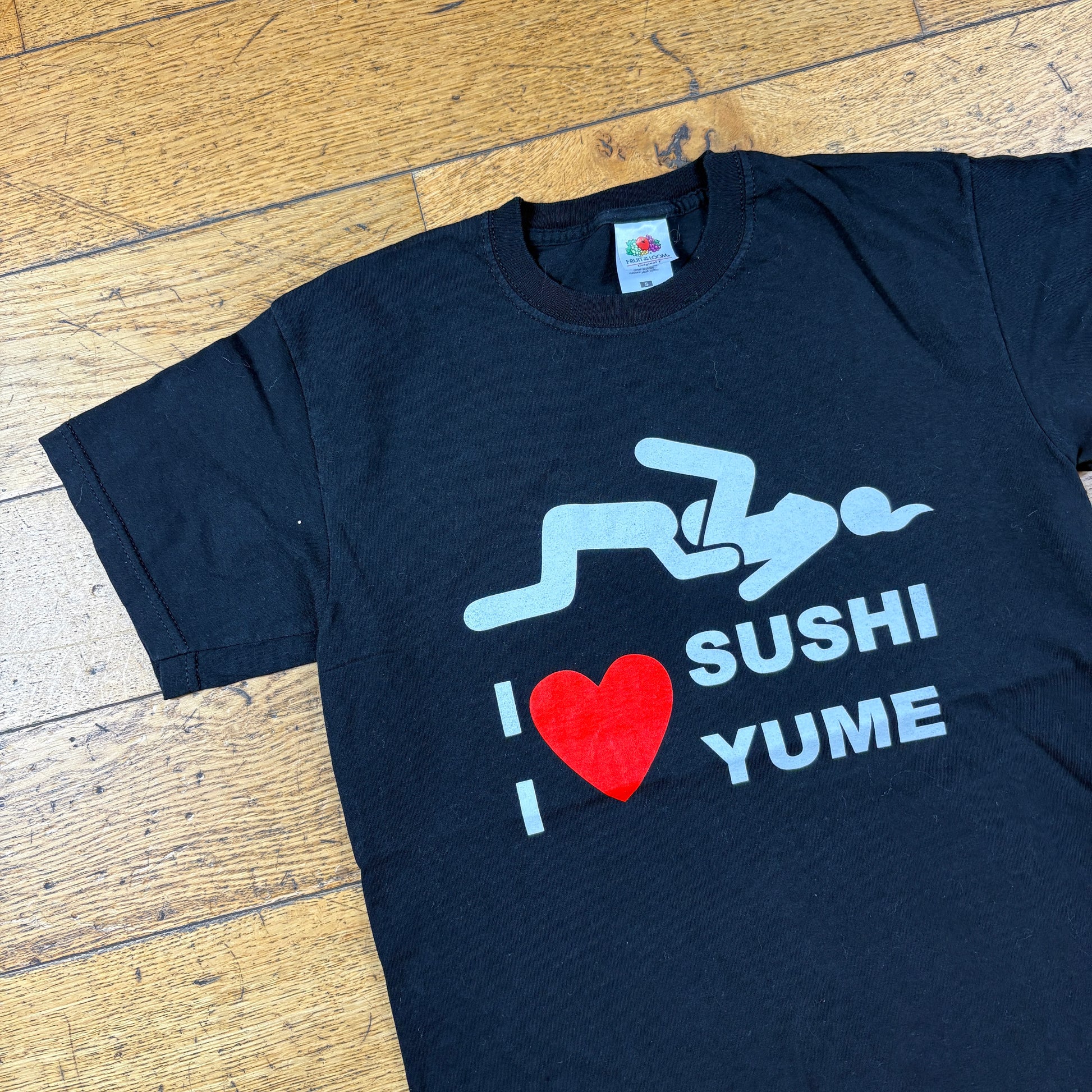 Vintage Funny I Love Sushi Black Graphic T-Shirt - XS