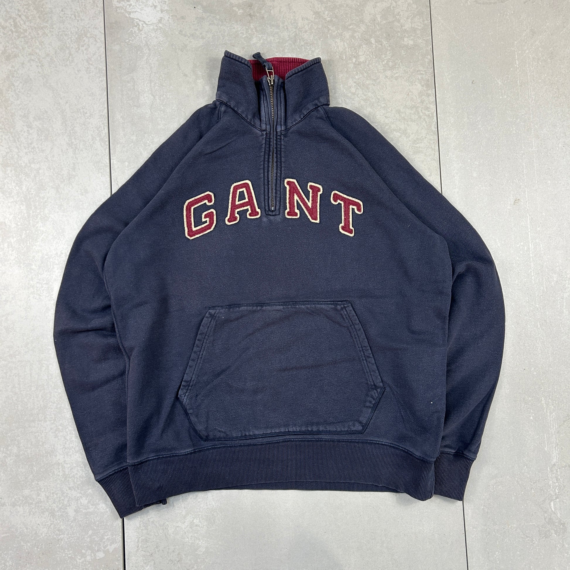 Vintage Gant Spellout Quarter Zip Navy Embroidered Sweatshirt - XXL