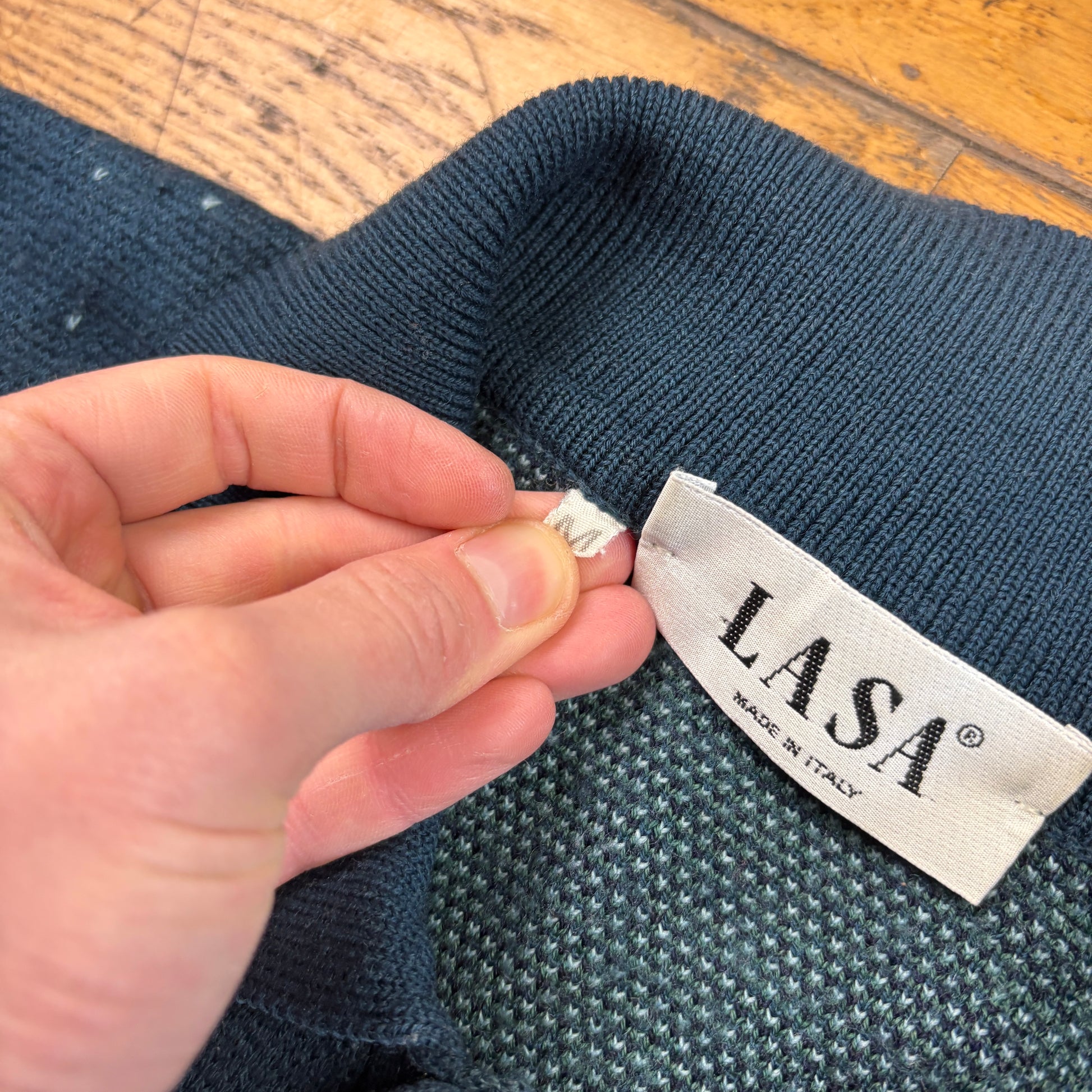 Vintage Green Italian Rugby Polo Pattern Italian Knit Jumper - M