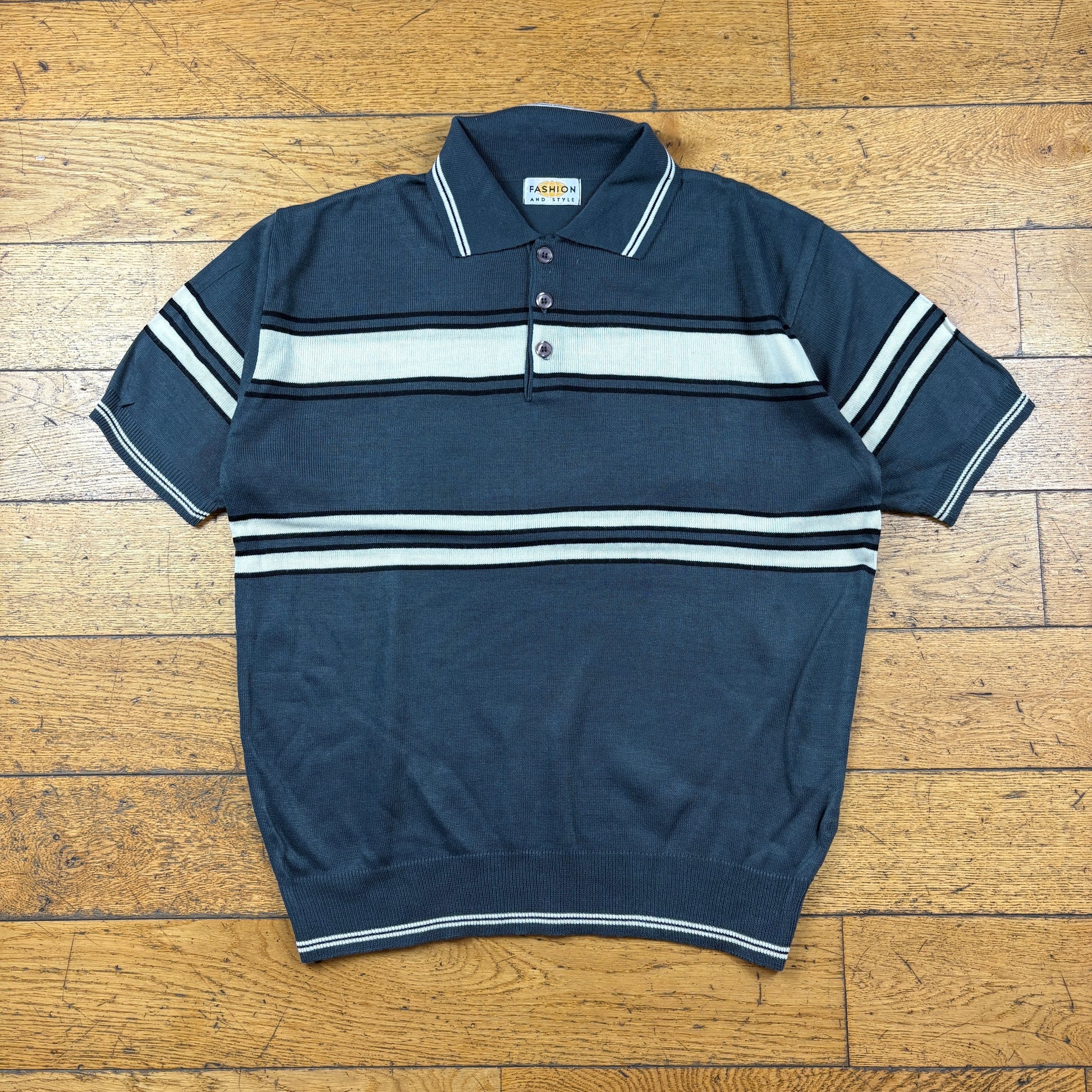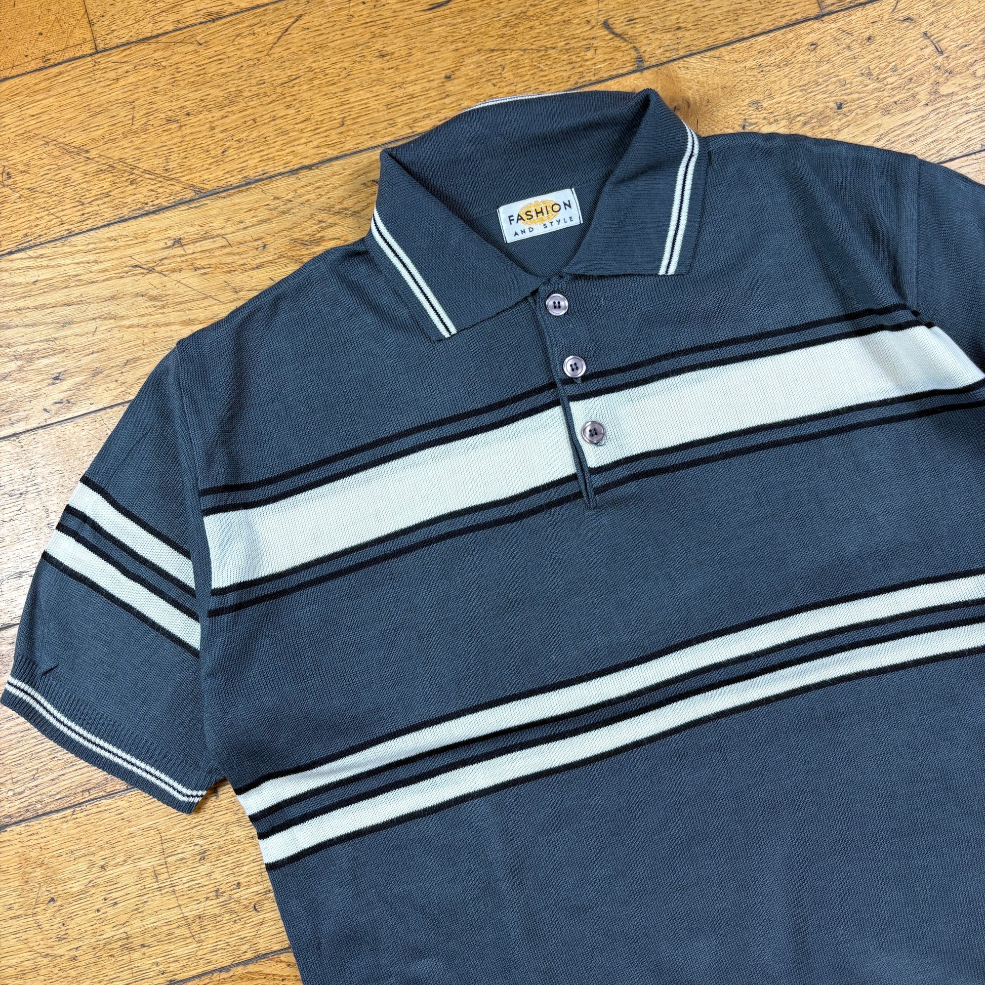 Vintage Grey Stripe Polo T-Shirt - L