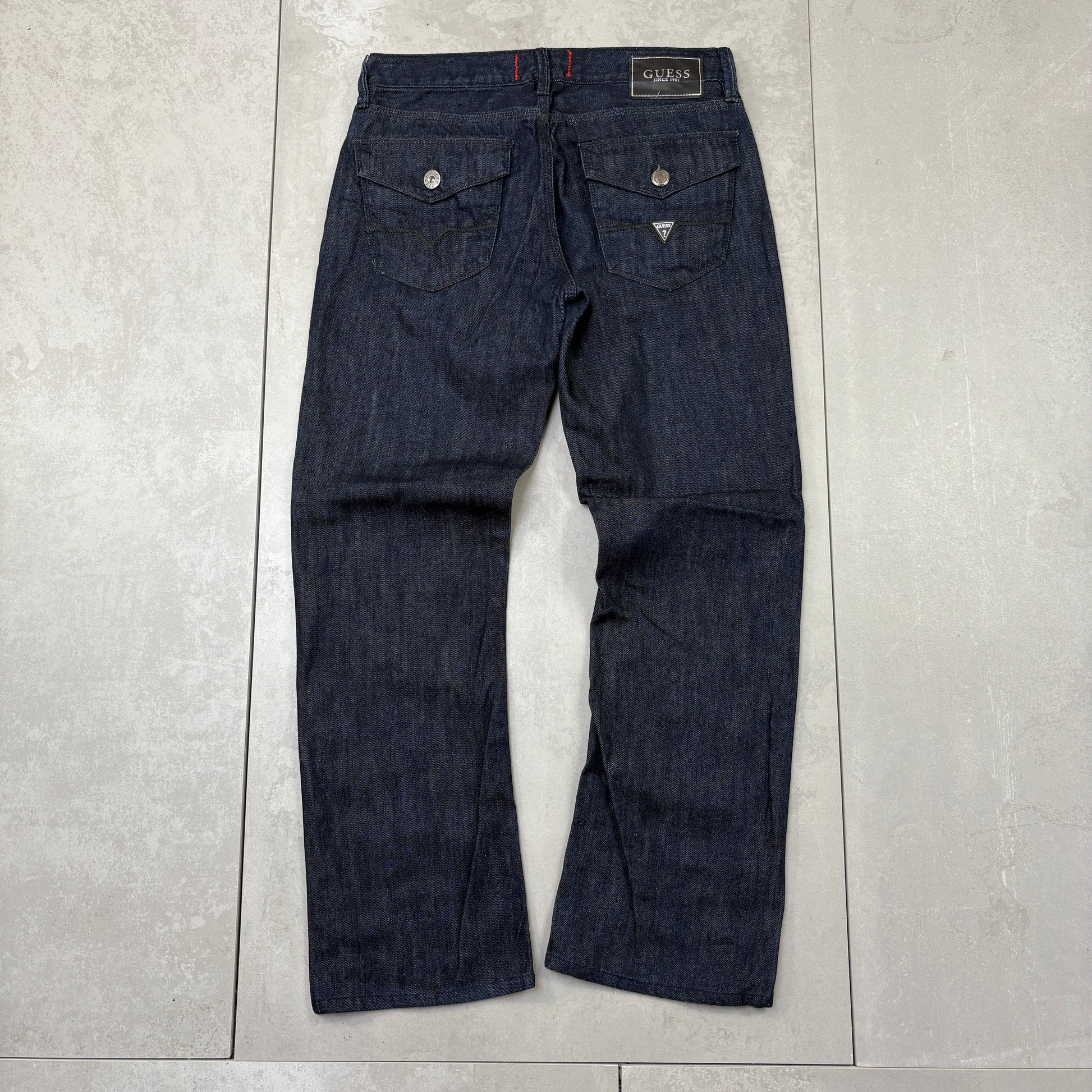 Vintage Guess Embroidered Hip Hop Baggy Blue Jeans - 32