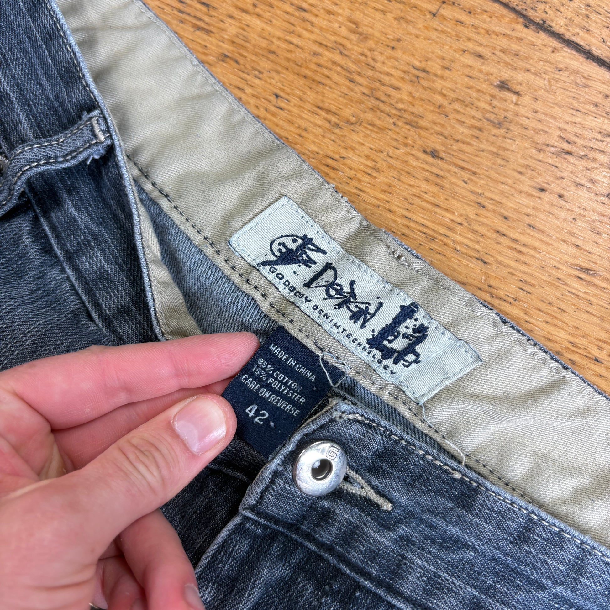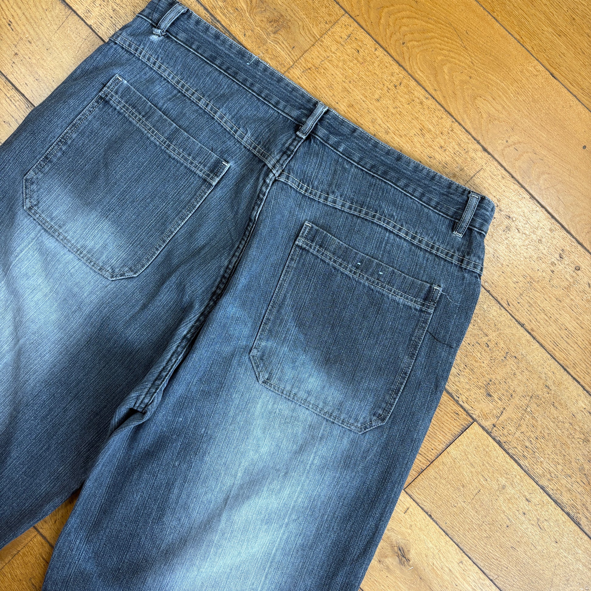Contrast stitch true religion JNCO Coogi Southpole akademics Fubu skate rocawear embroidered denim jeans jorts skatewear surfwear carpenter cargo japanese denim