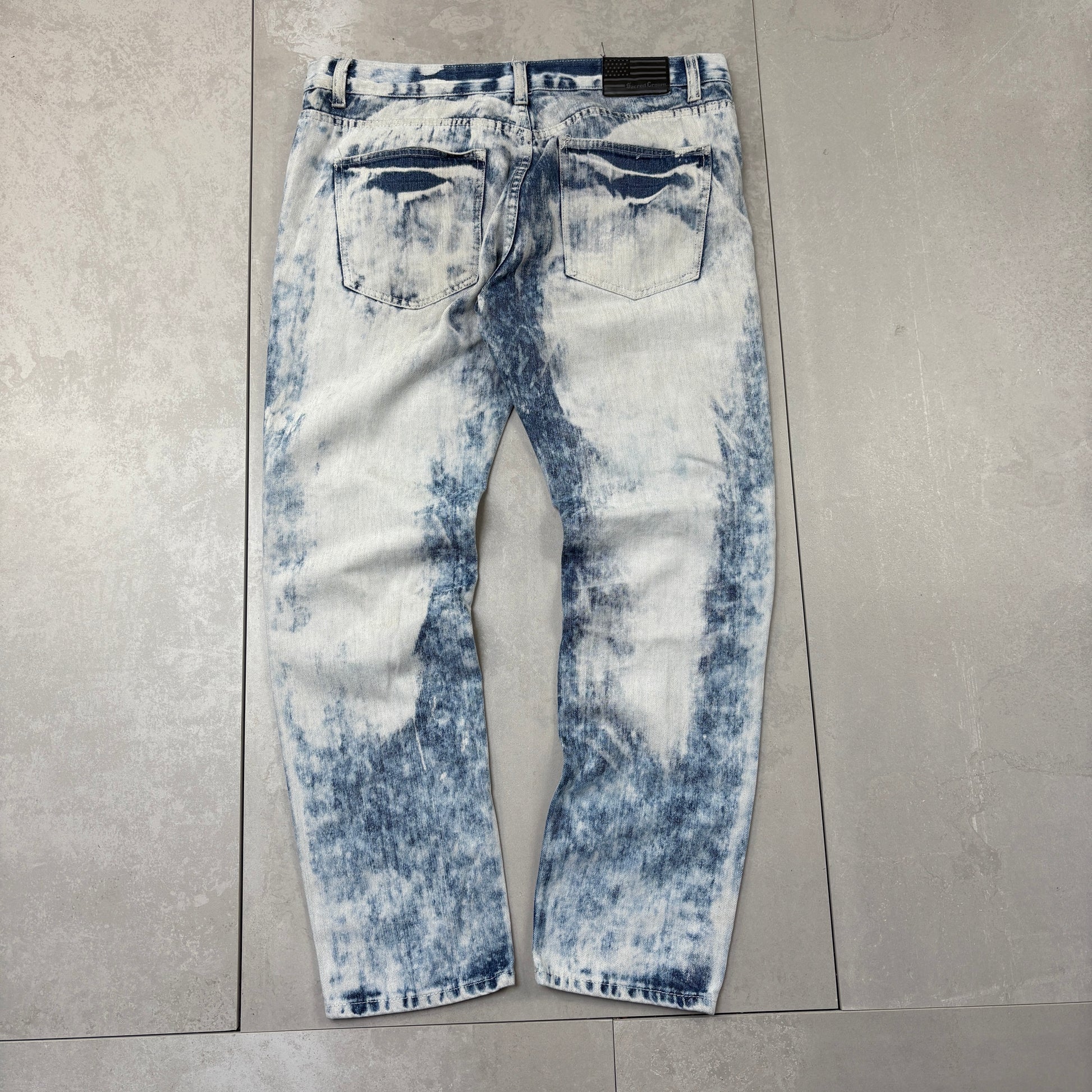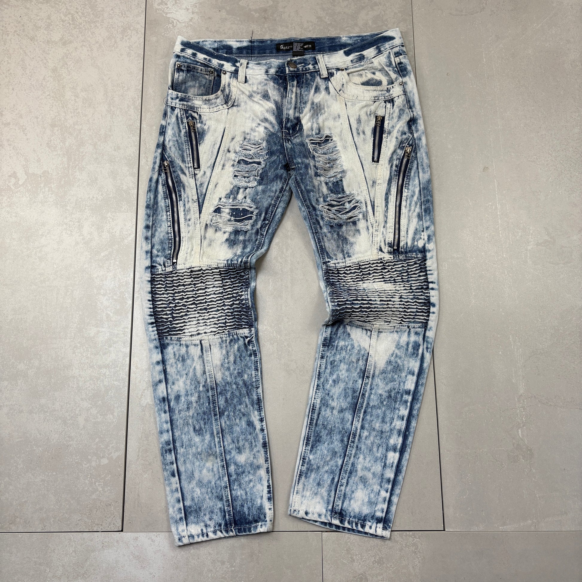 Vintage Hip Hop Moto Acid Wash Blue Straight Jeans - 40