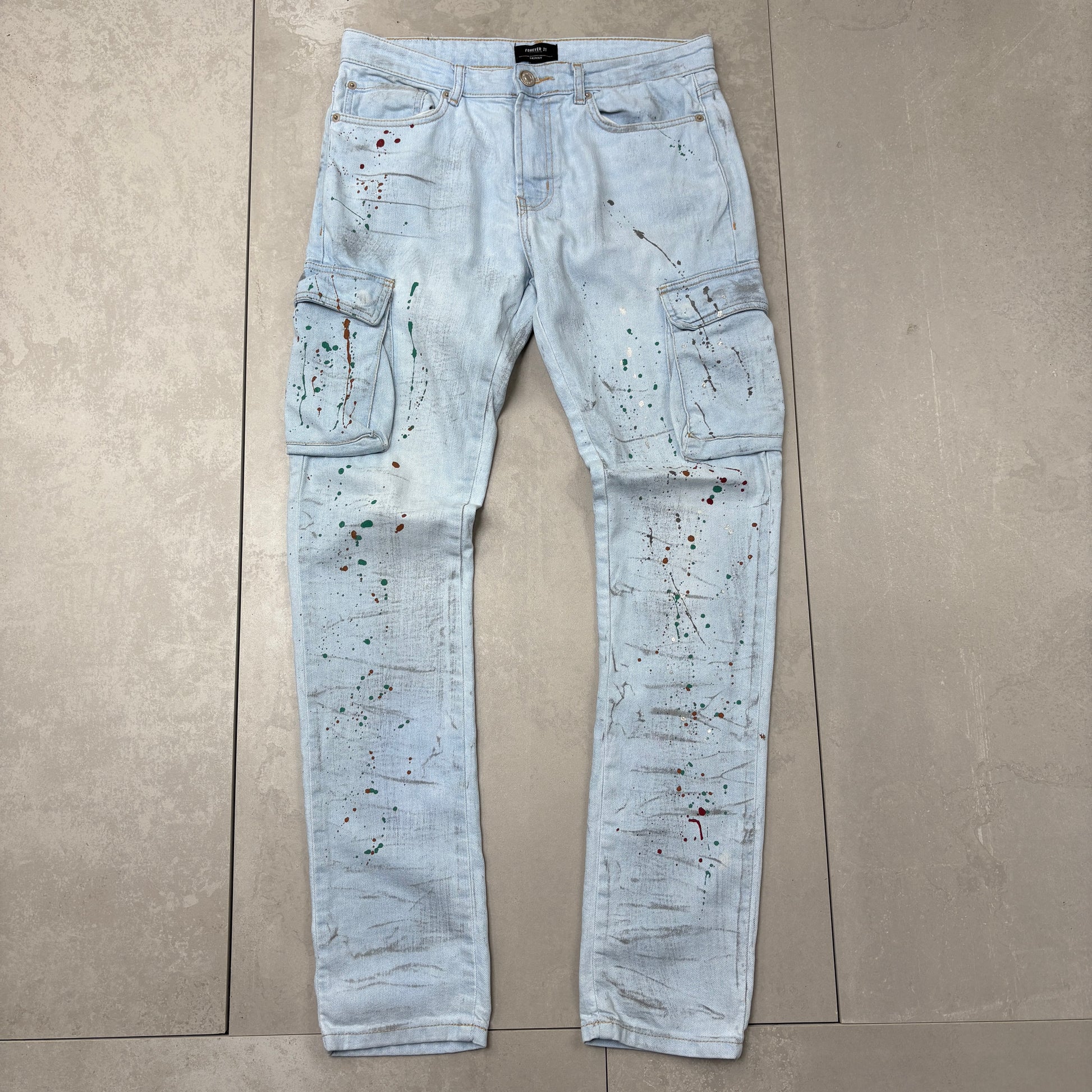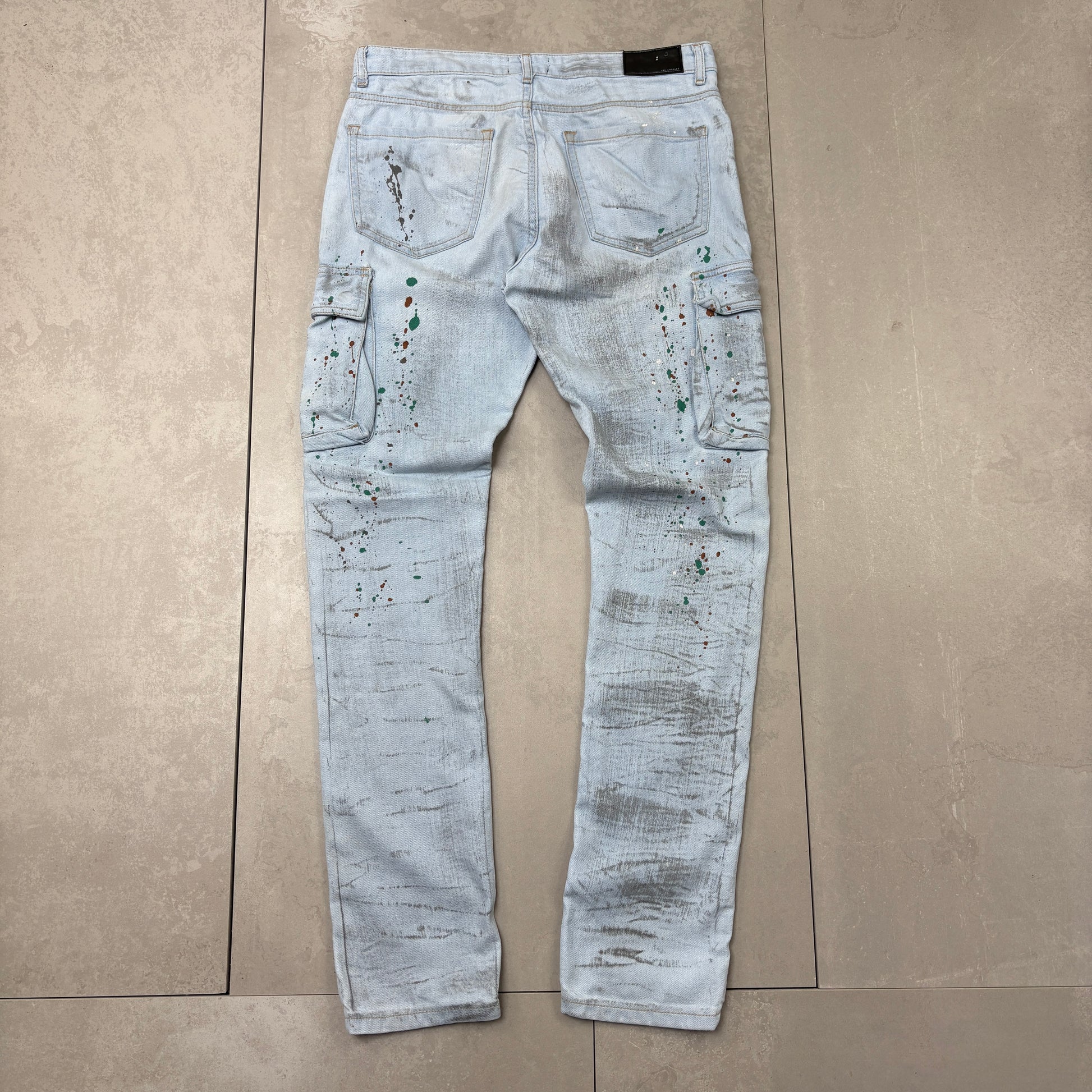 Vintage Hip Hop Skinny Blue Cargo Jeans - 34