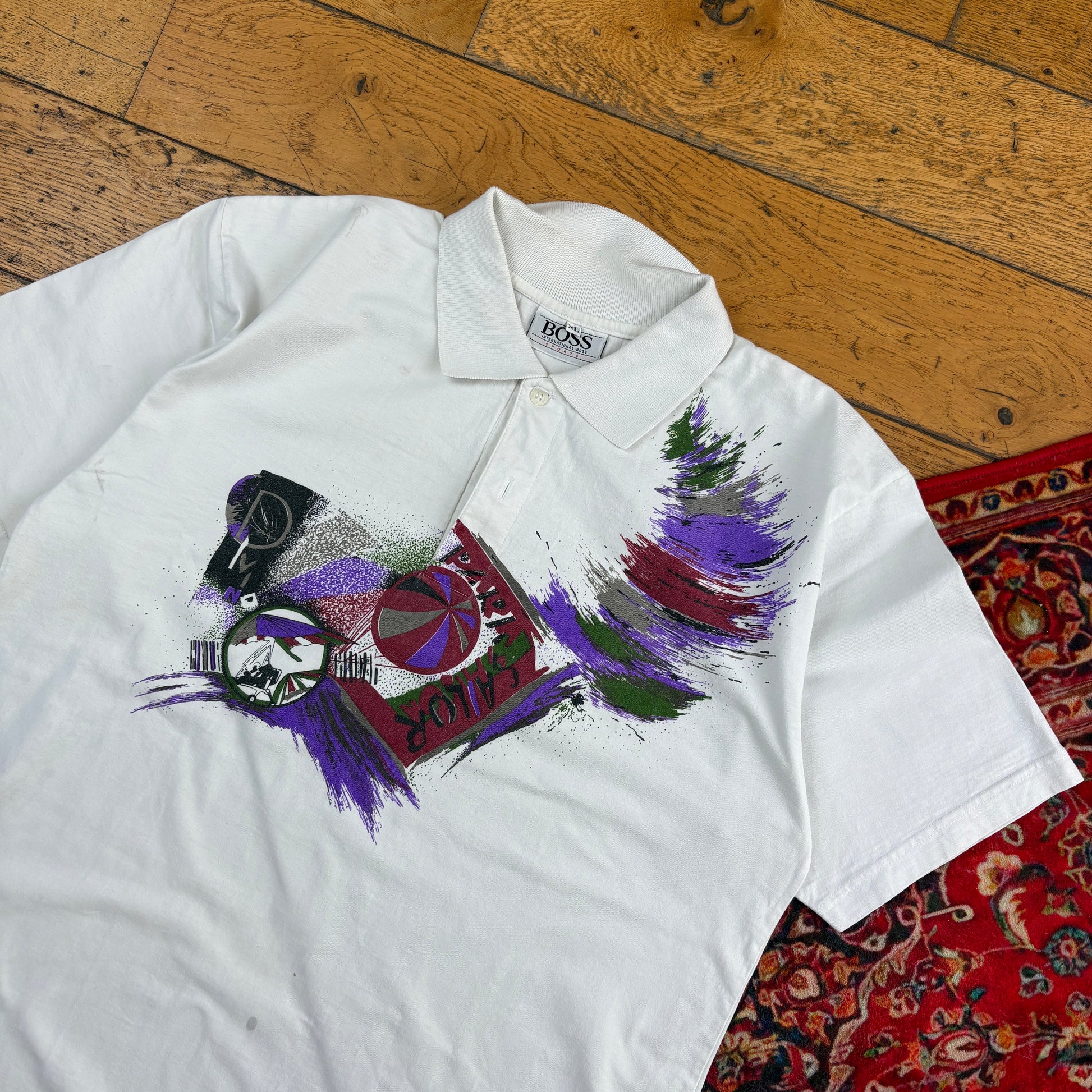 Vintage Hugo Boss Tennis White Pattern Polo Shirt - M