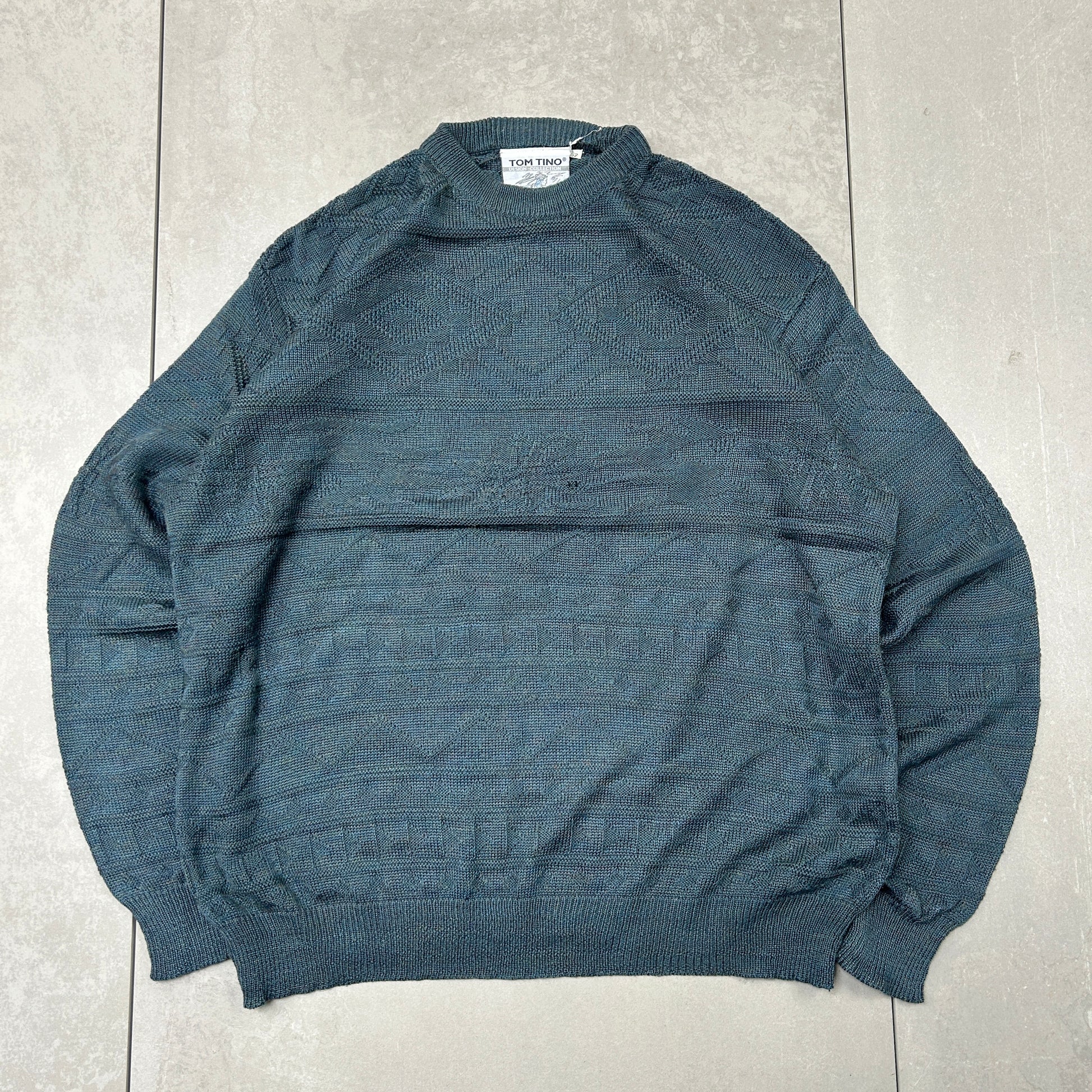 Vintage Italian Green Pattern Chunky Knit Jumper - XL