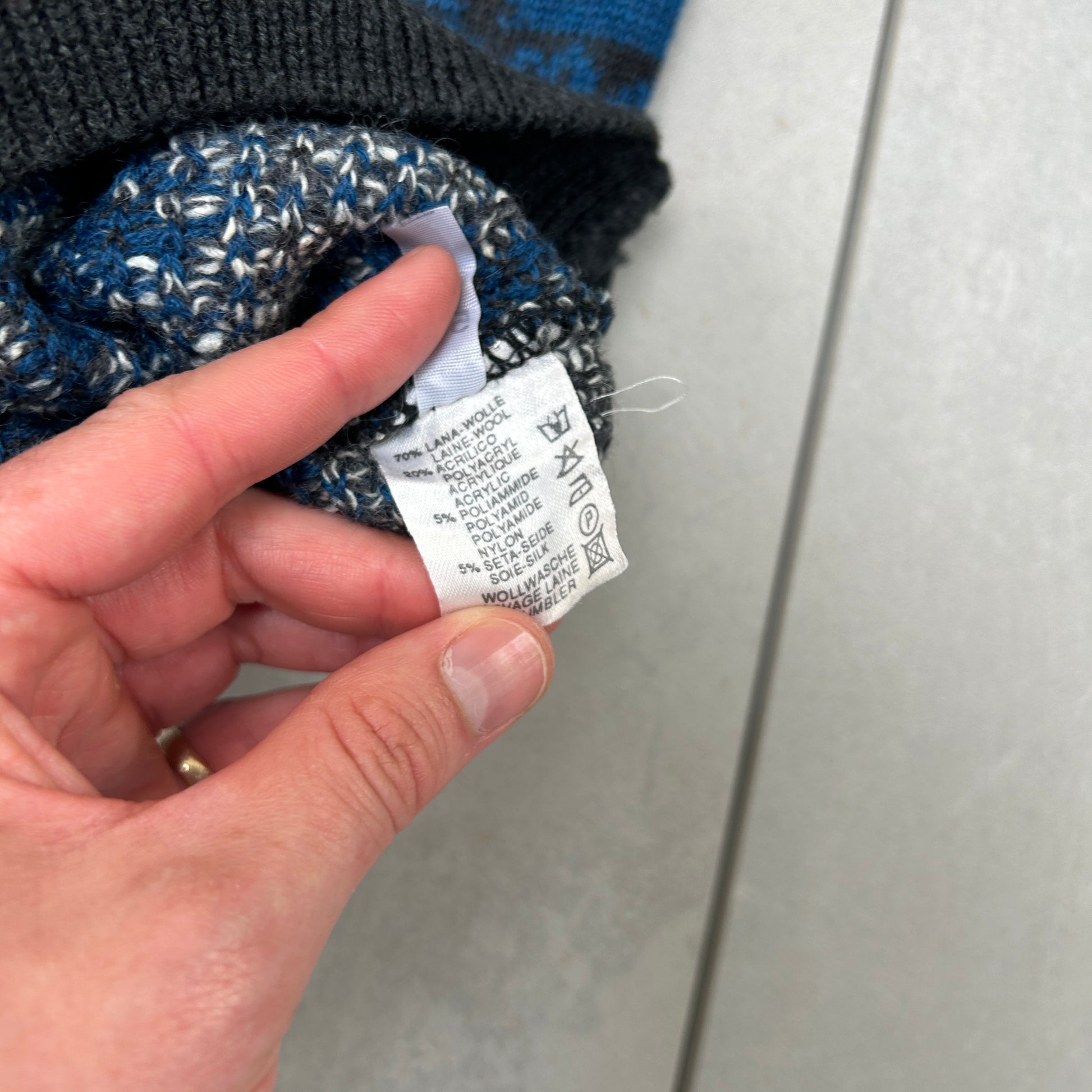 Vintage Italian Grey Blue Pattern Wool Chunky Knit Jumper - L