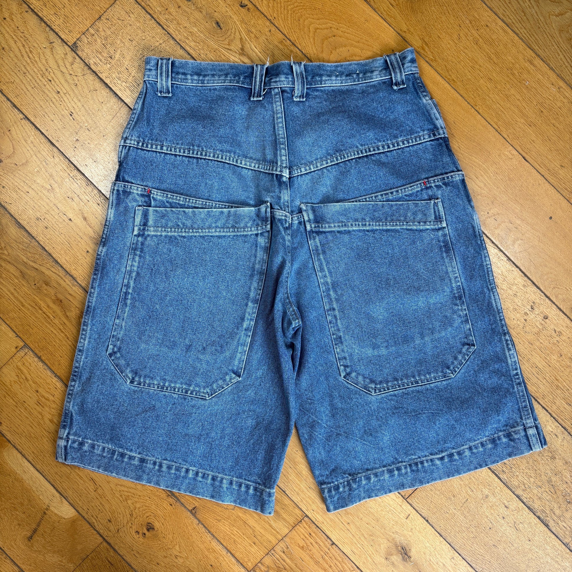 Vintage JNCO Style Embroidered Hip Hop Blue Baggy Shorts Jorts - 34