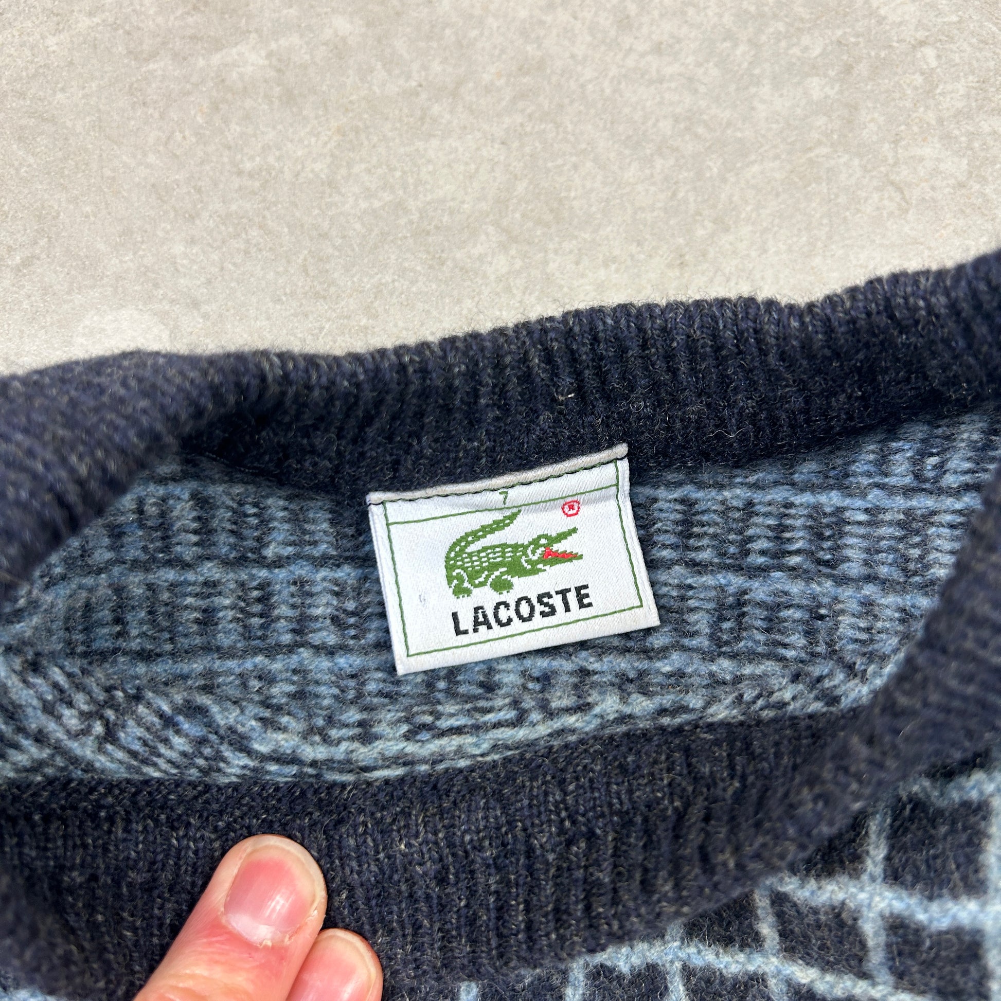 Vintage Lacoste Knit Wool Jumper Blue Pattern - S