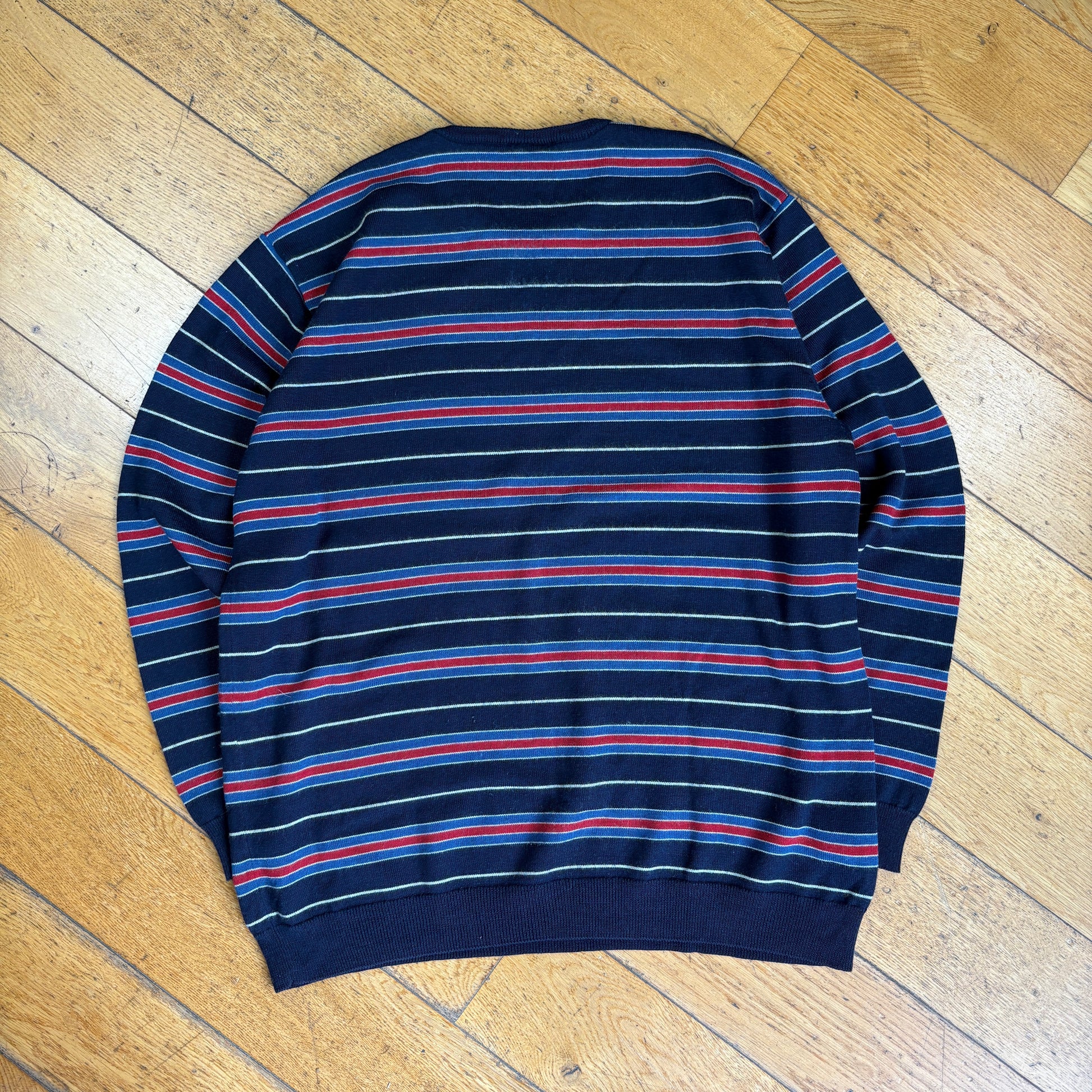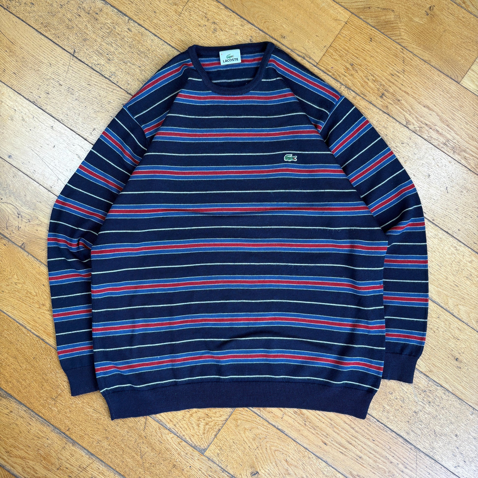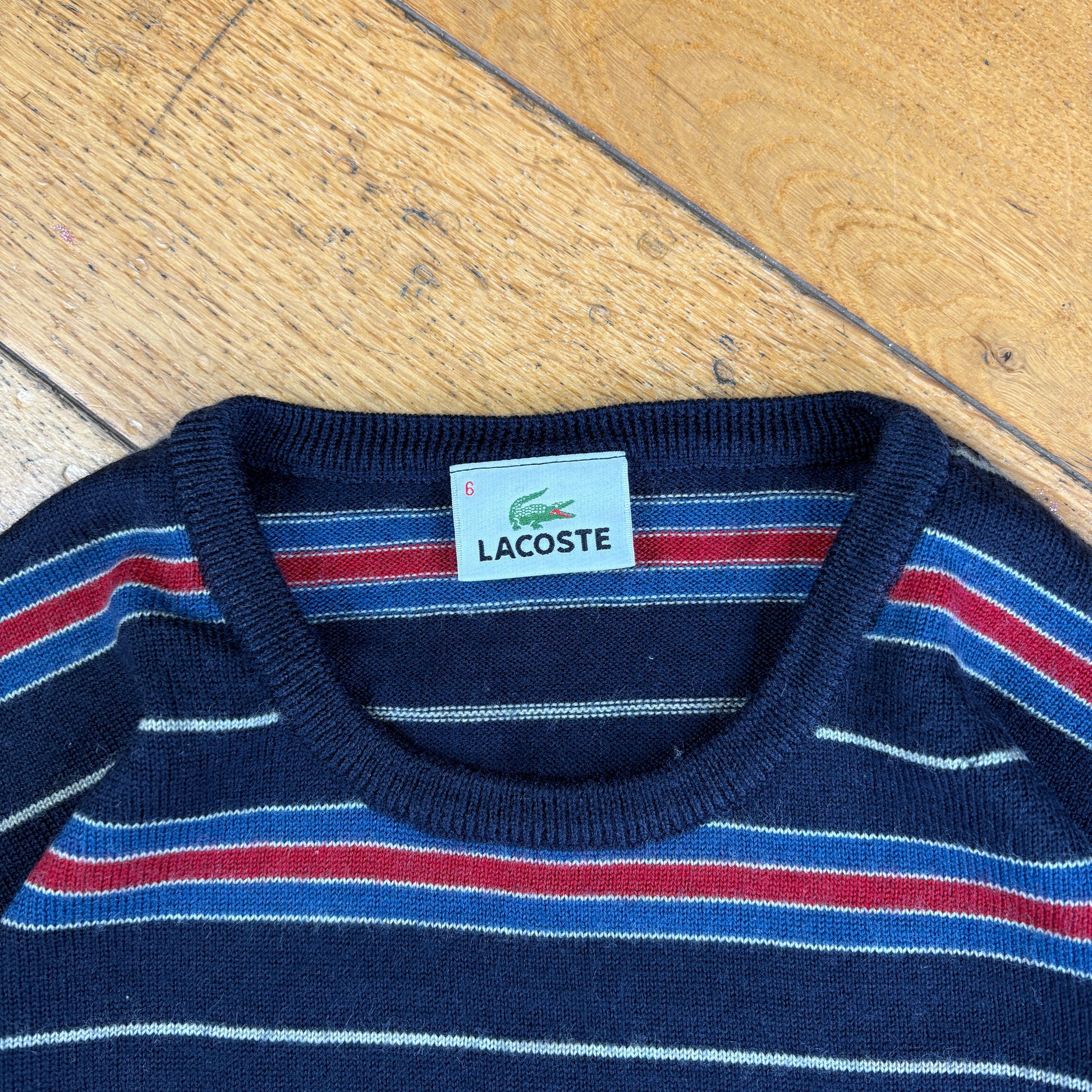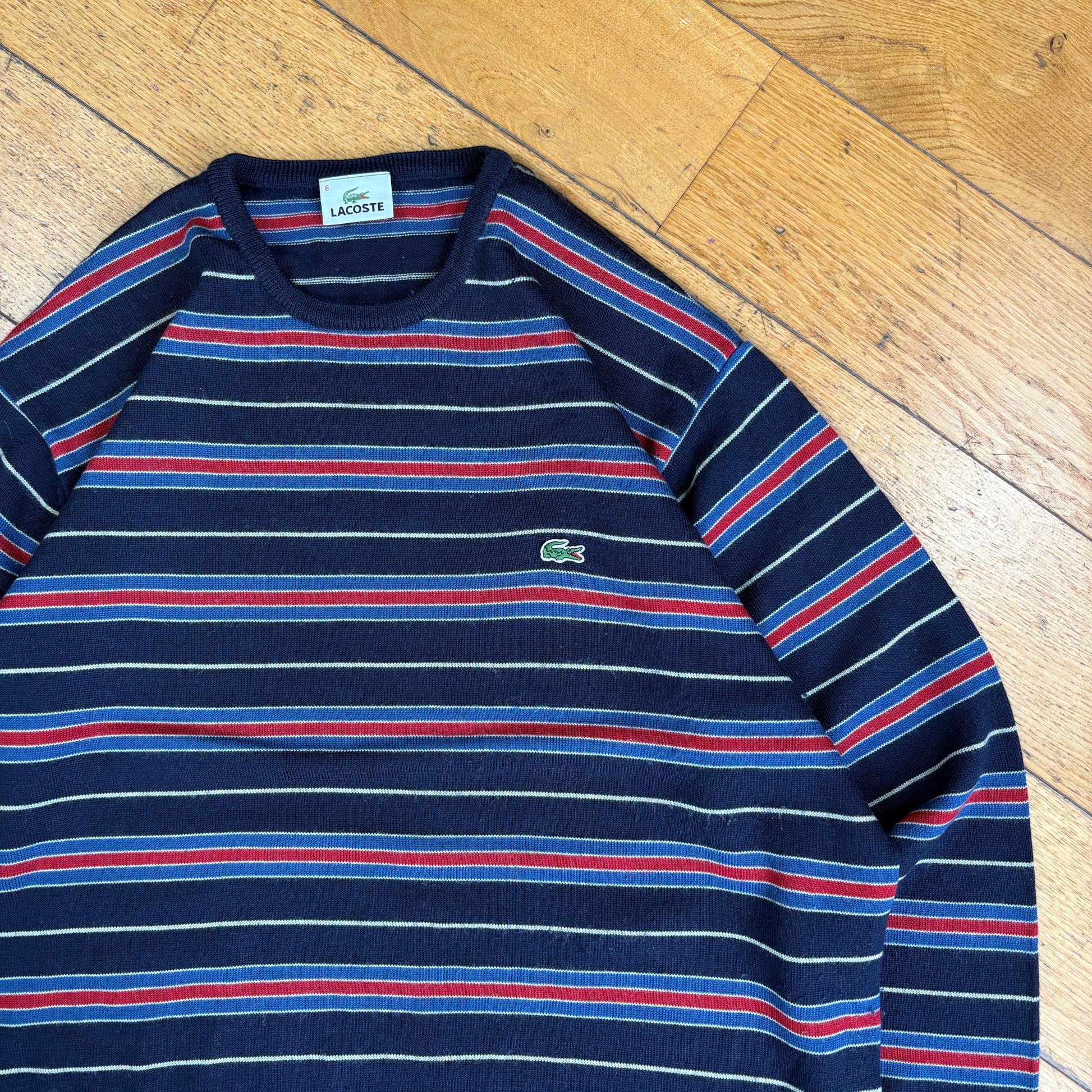 Vintage Lacoste Stripe Navy Red Wool Knit Jumper - L