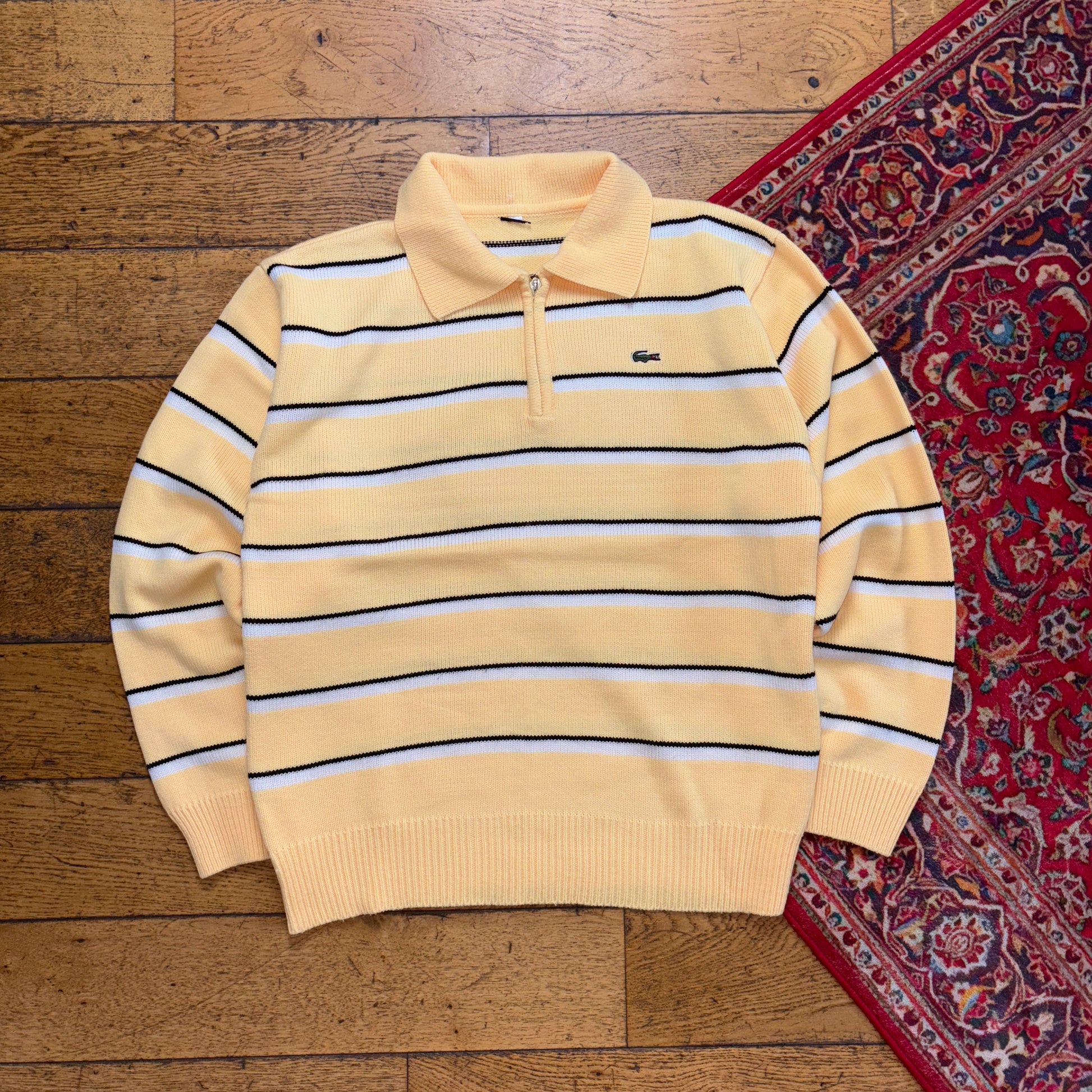 Vintage Lacoste Yellow Chunky Knit Quarter Zip Rugby Shirt Jumper - M