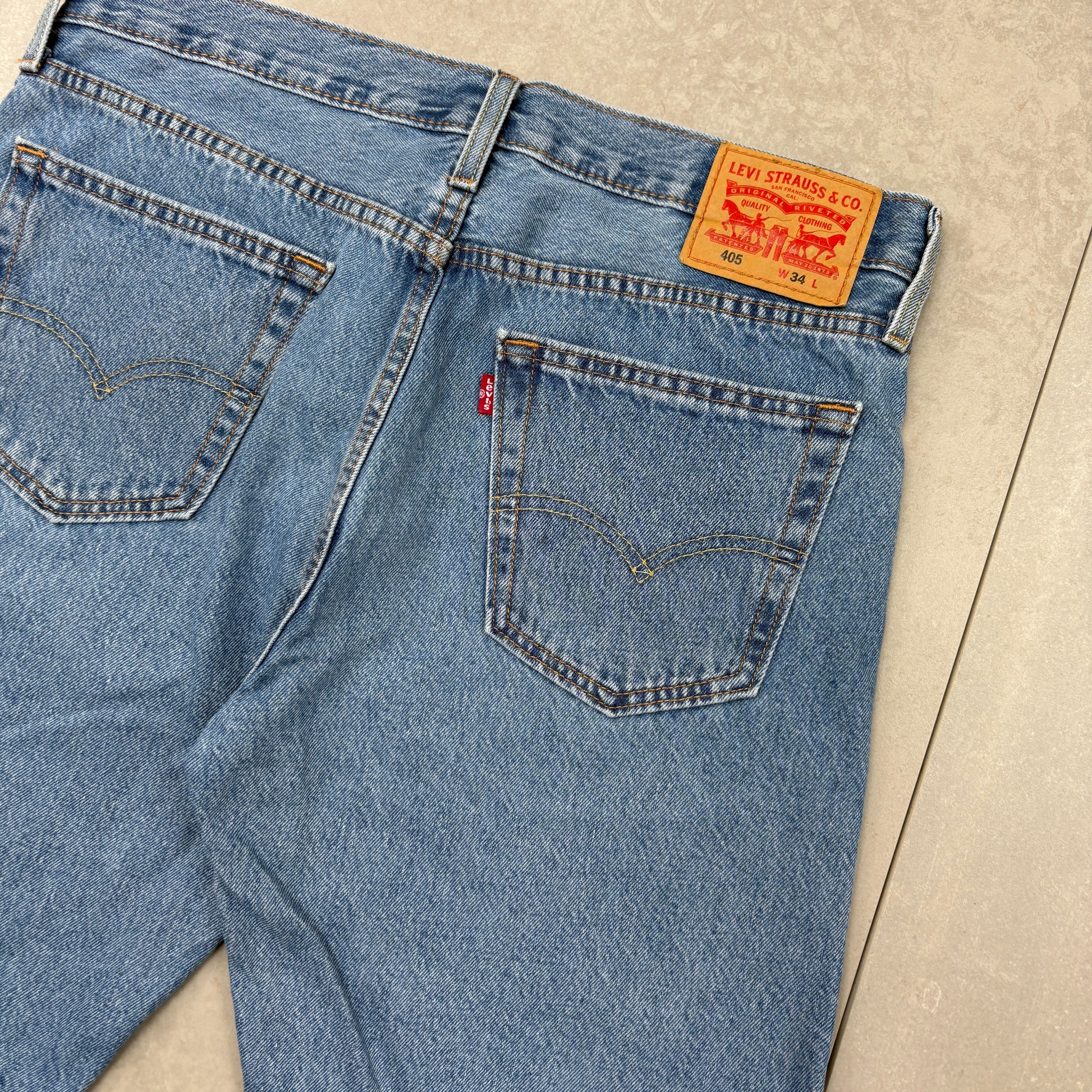 Vintage Levis 405 Blue Baggy Denim Shorts - 34