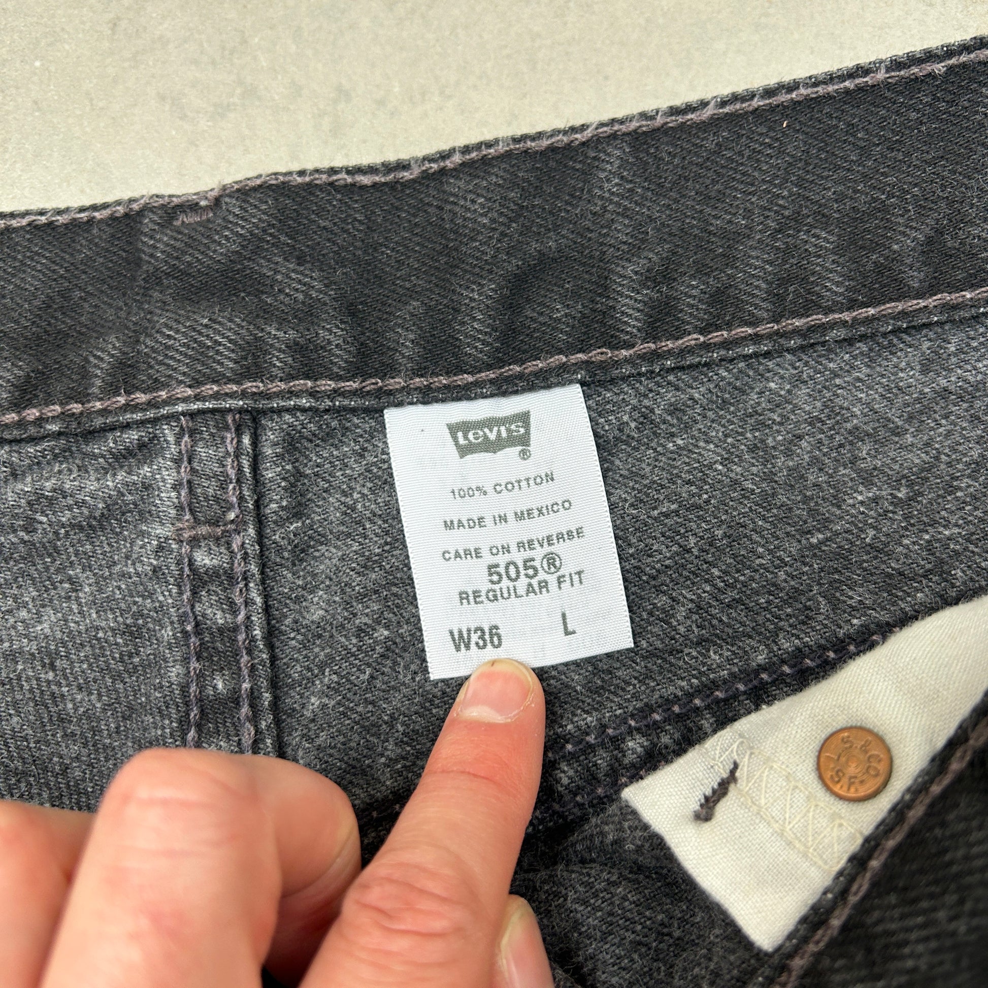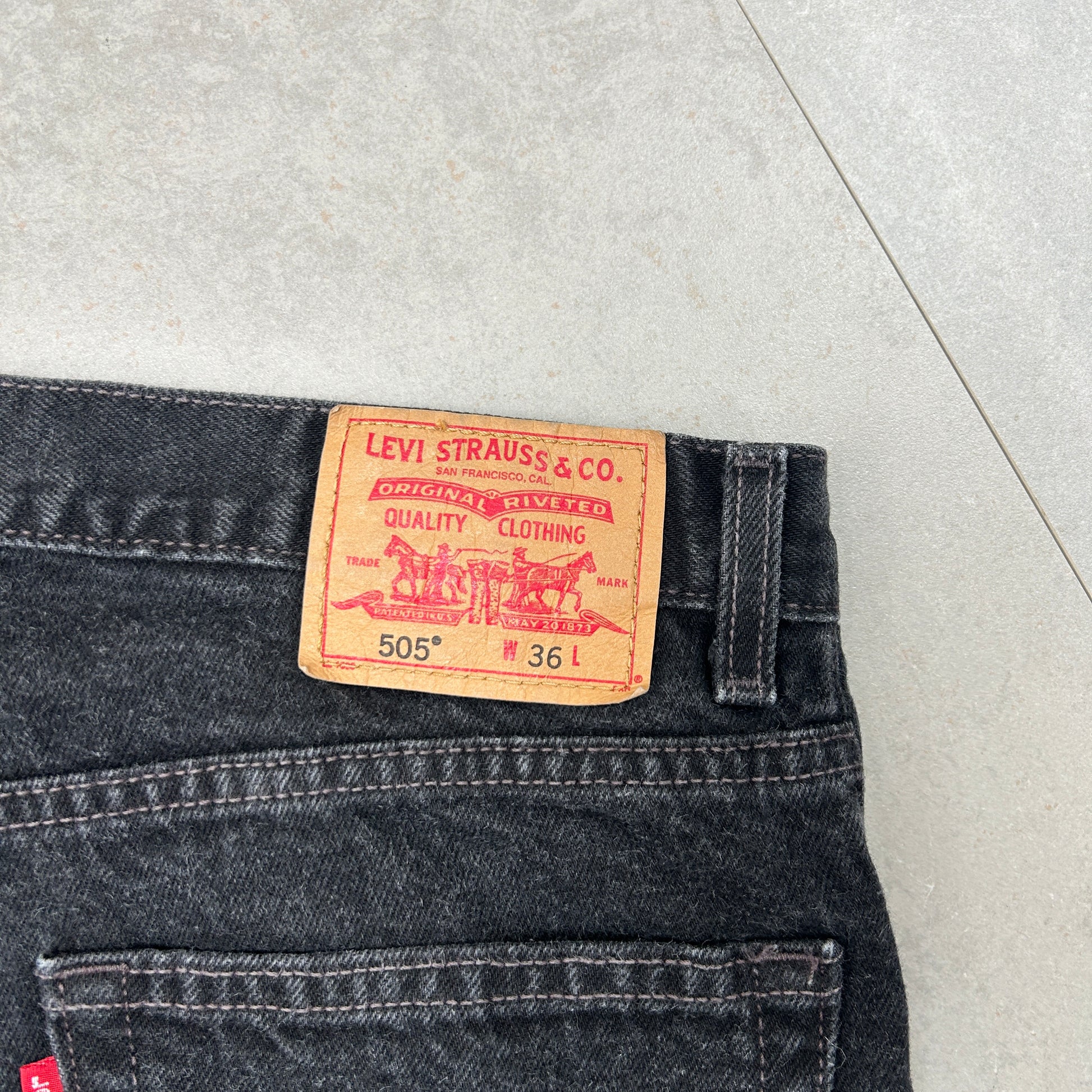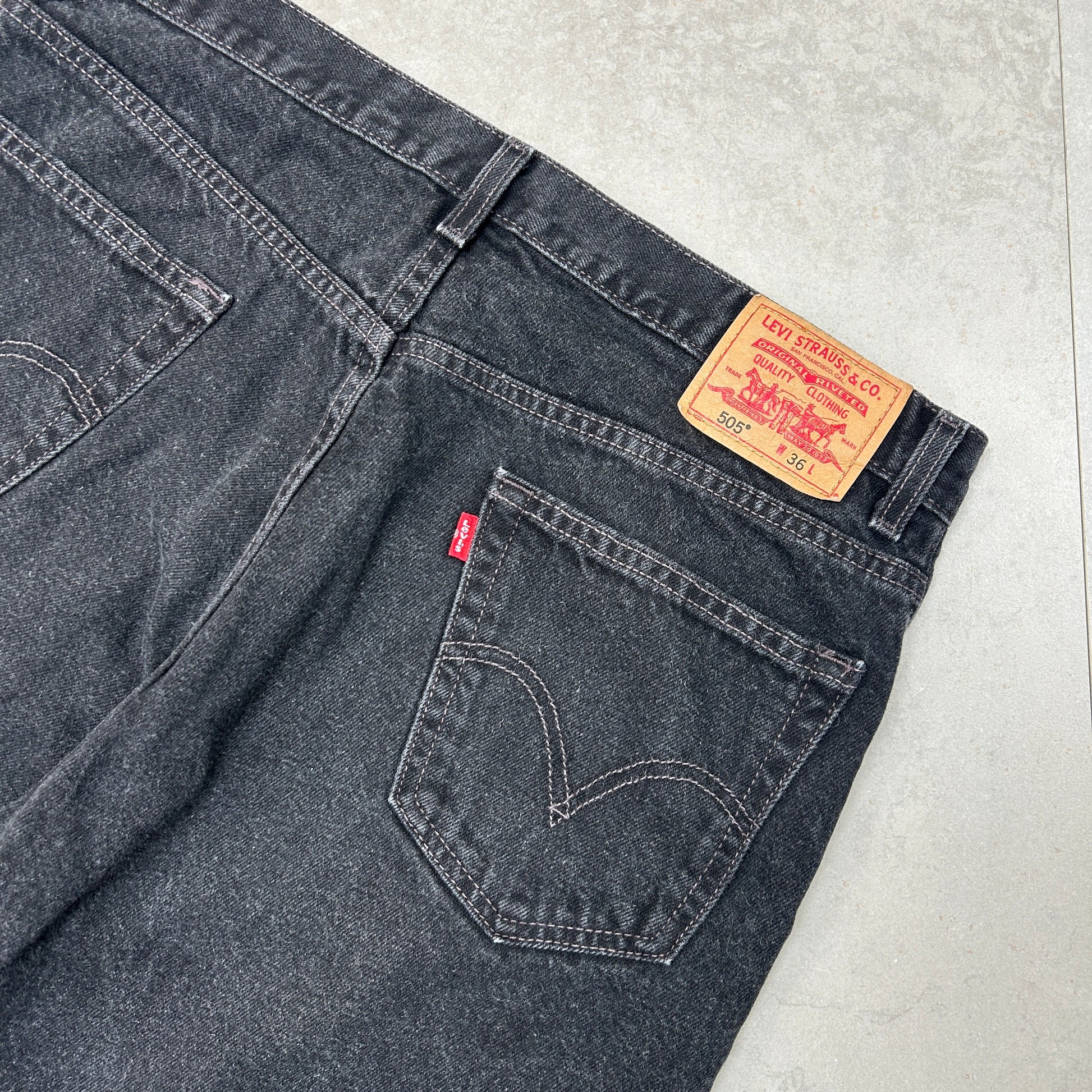 Vintage Levis 505 Black Baggy Denim Shorts - 36