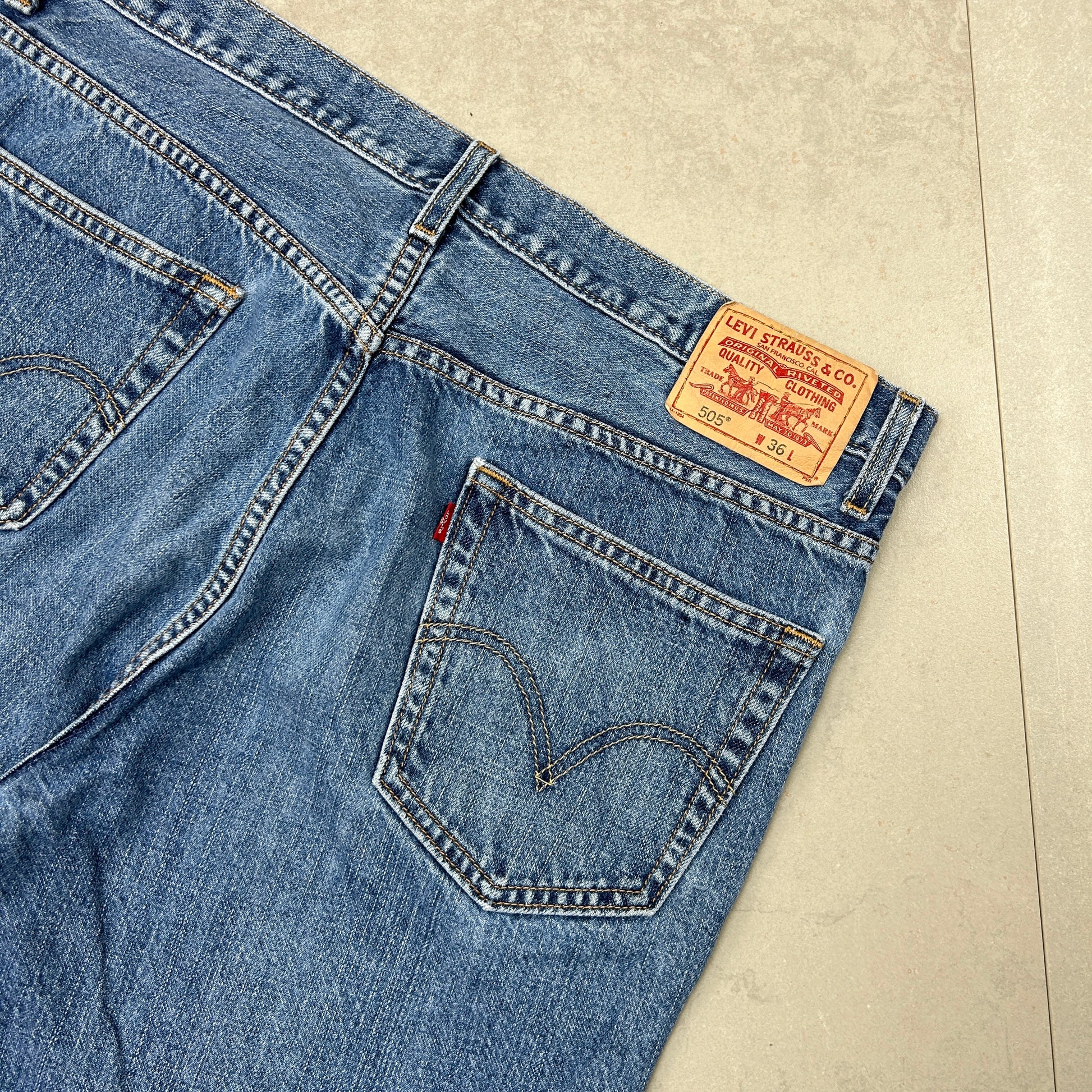 Vintage Levis 505 Blue Baggy Denim Shorts - 36