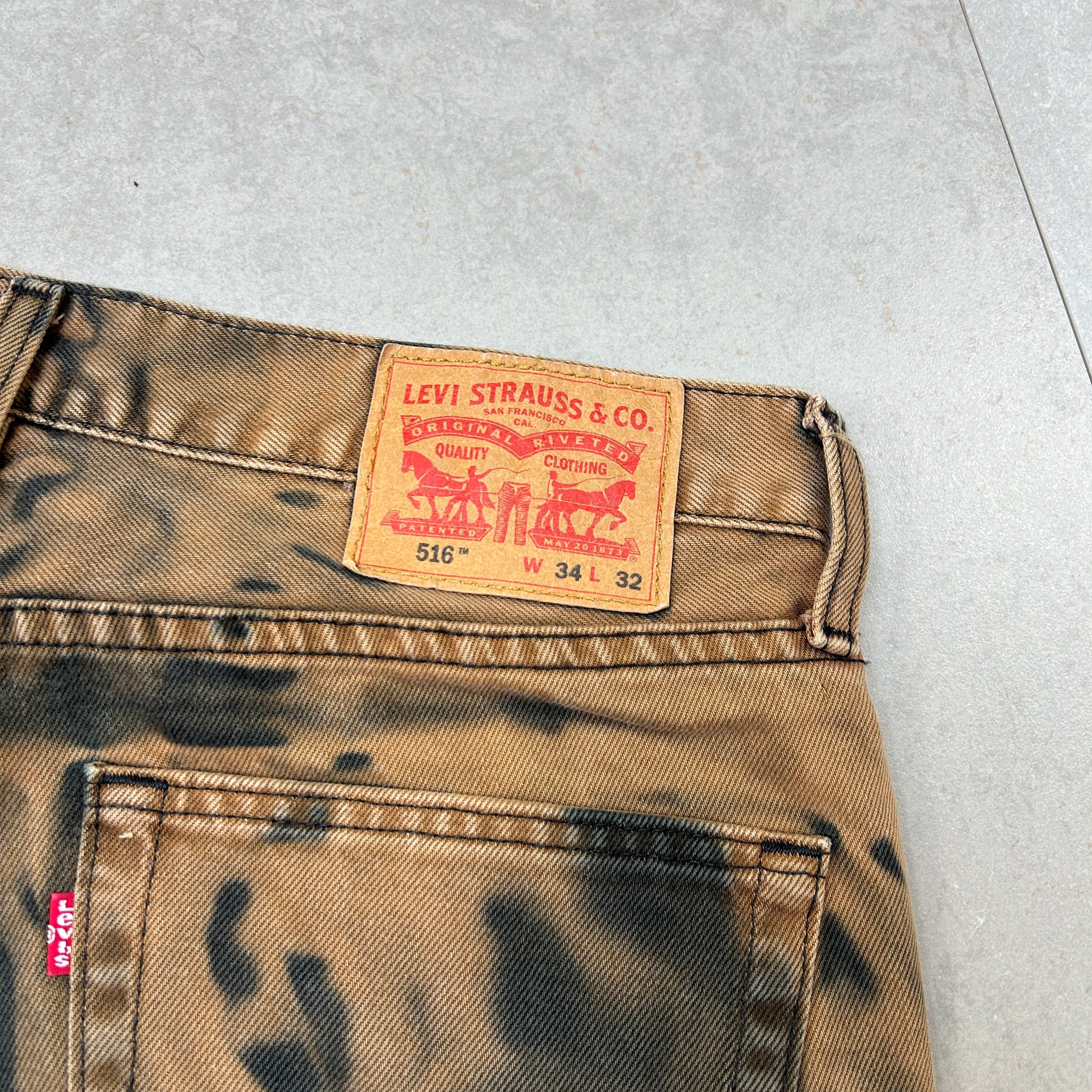 Vintage Levis 516 Baggy Brown Bleached Black Denim Shorts - 34