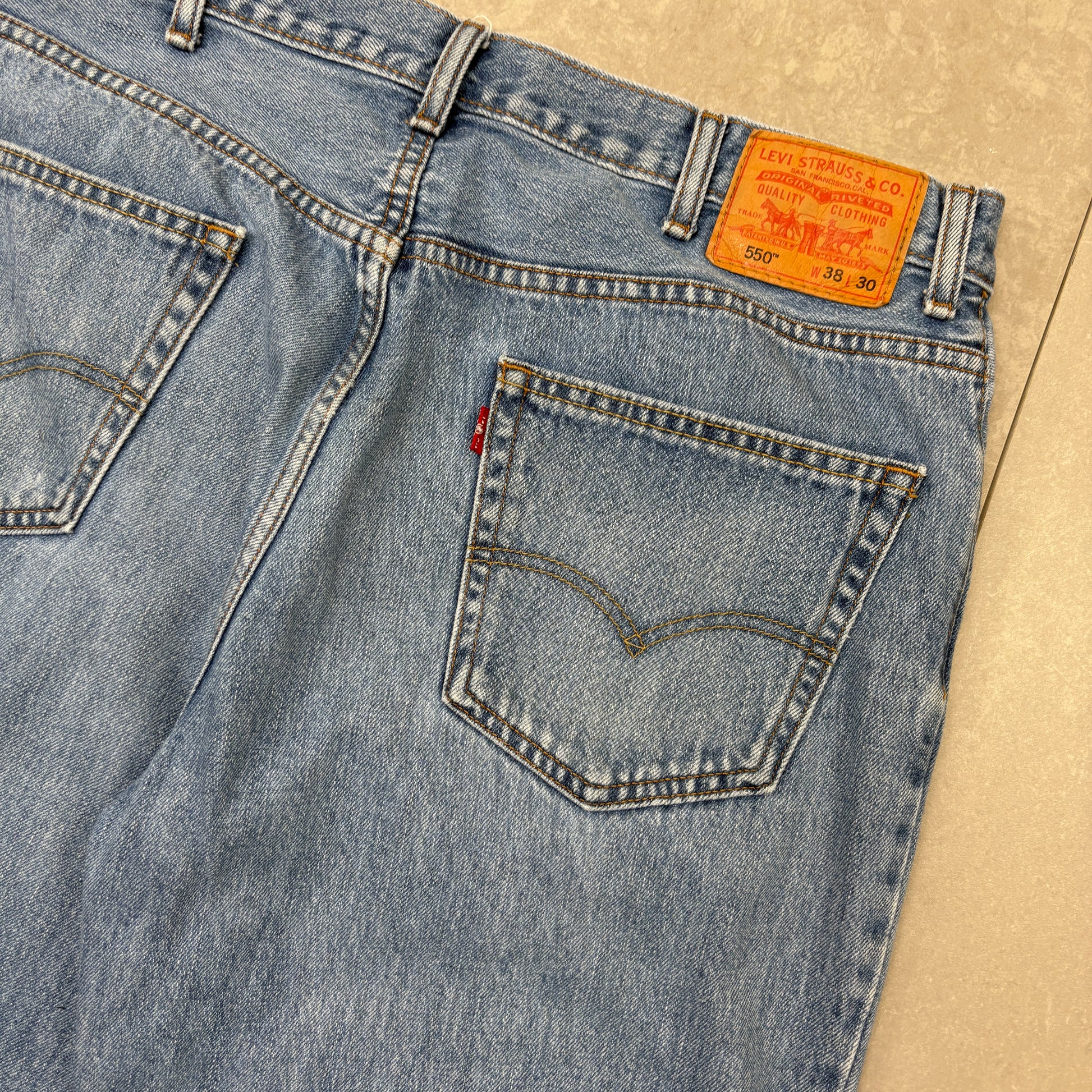 Vintage Levis 550 Baggy Blue Denim Shorts - 38