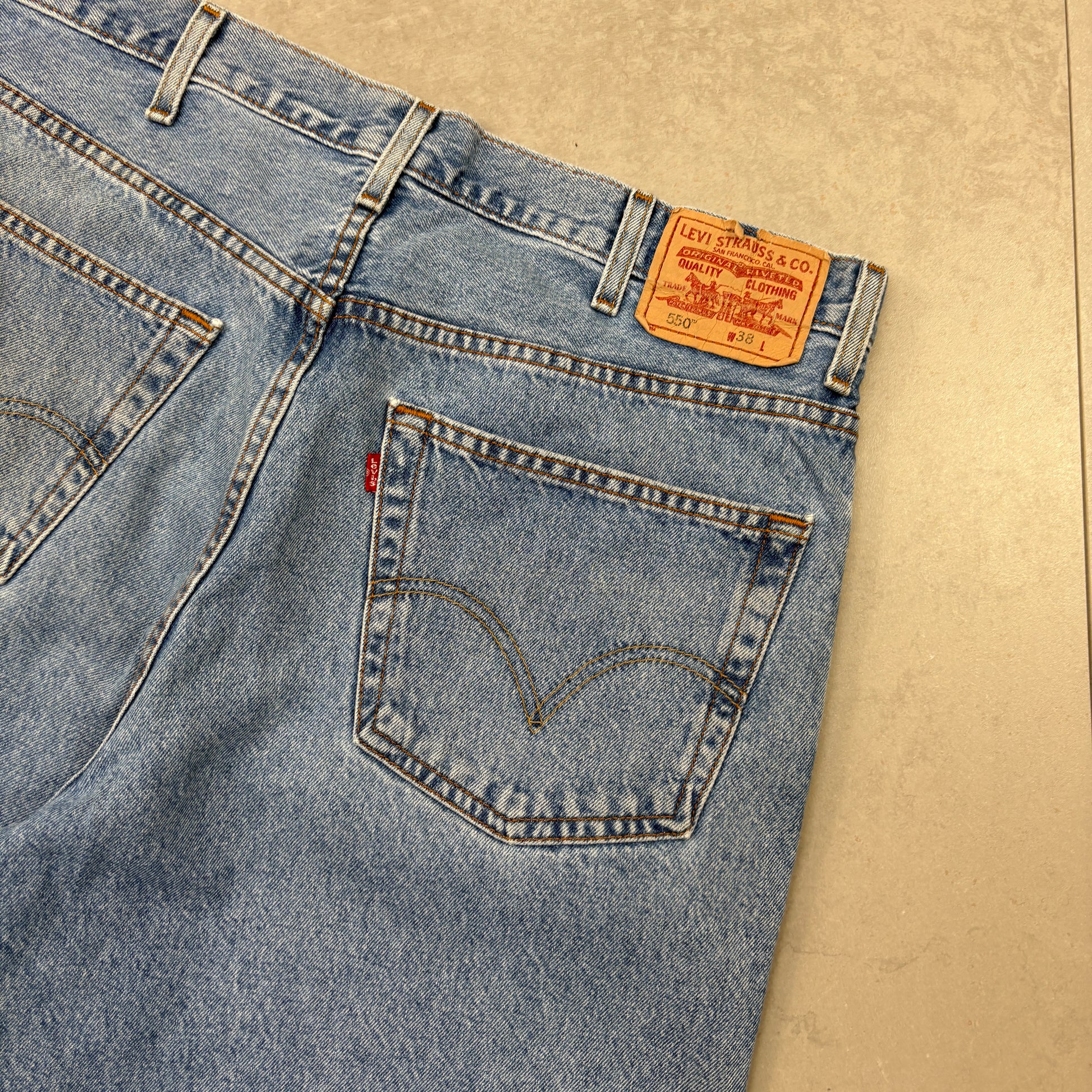 Vintage Levis 550 Baggy Blue Denim Shorts - 38